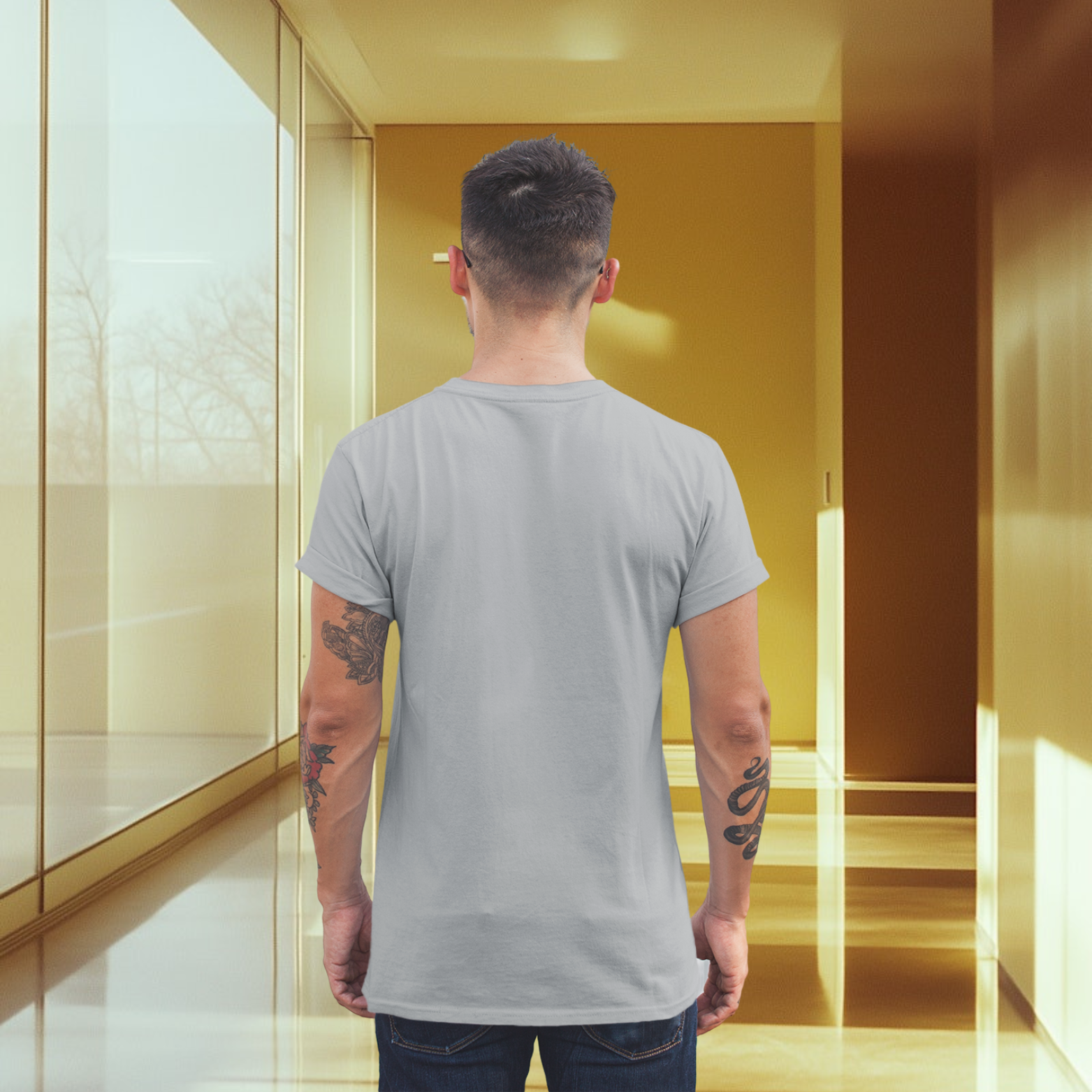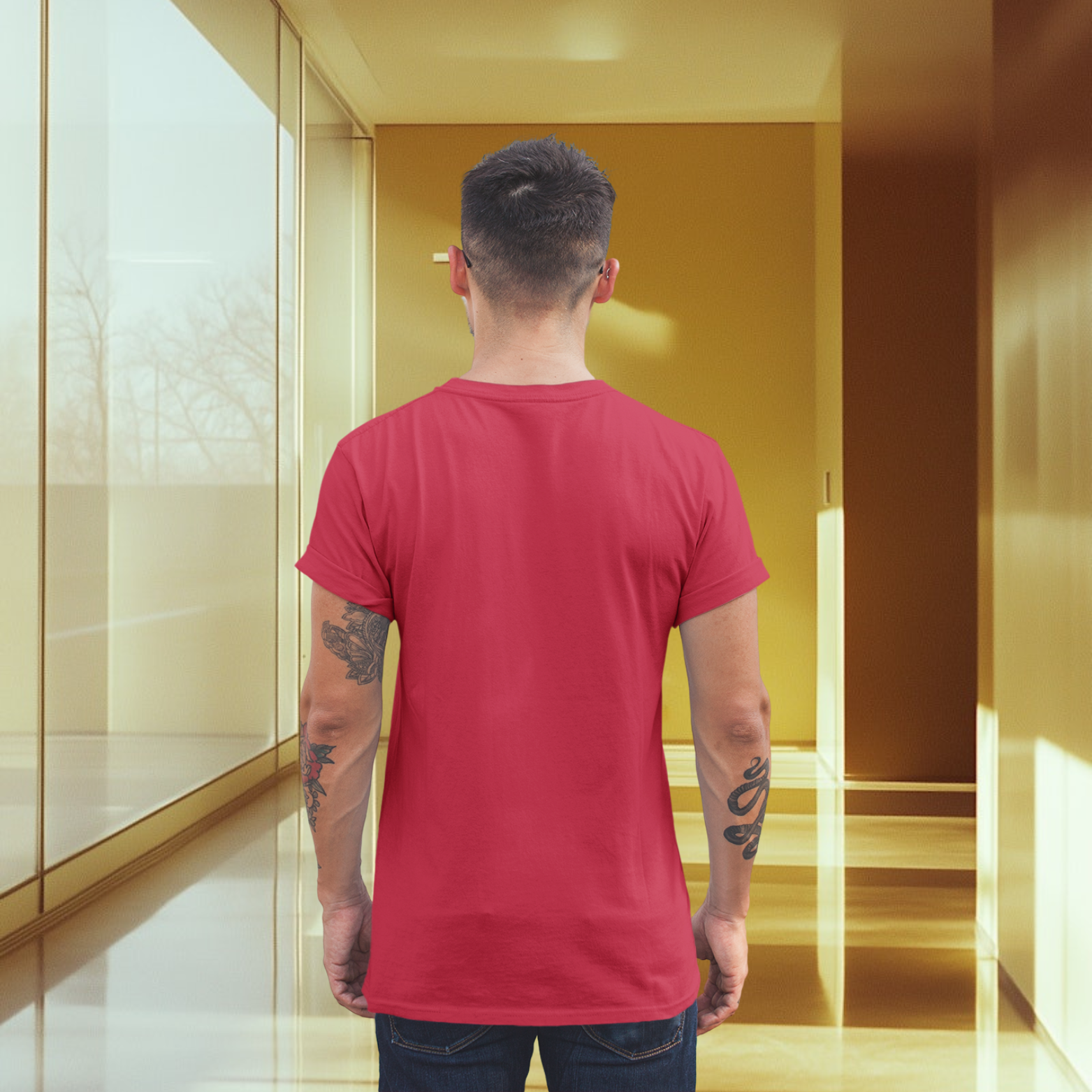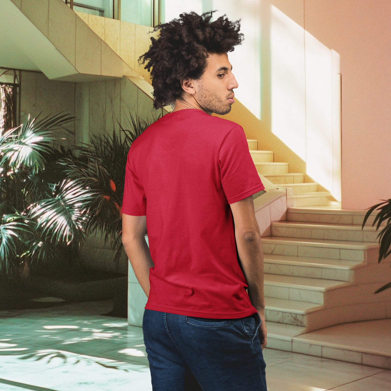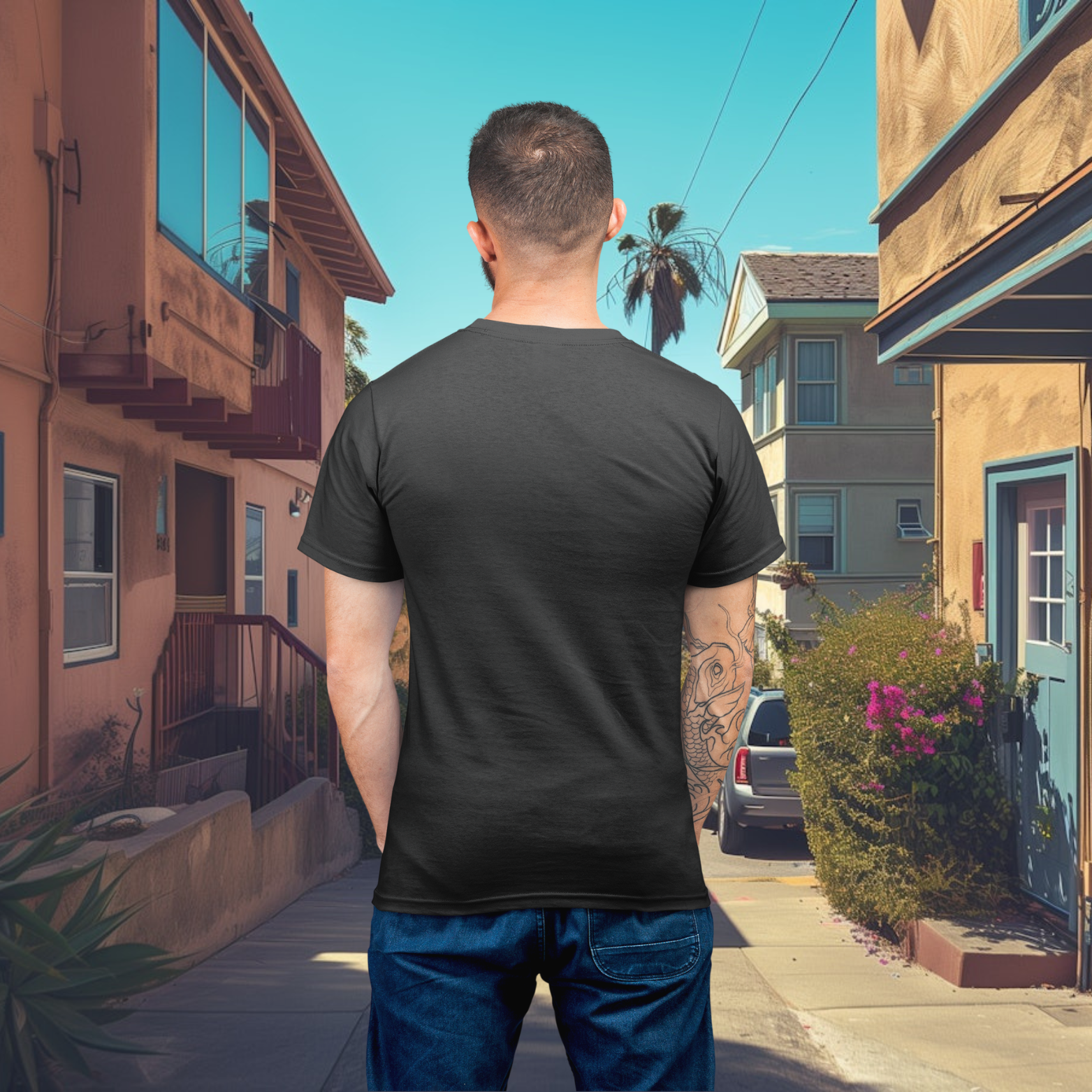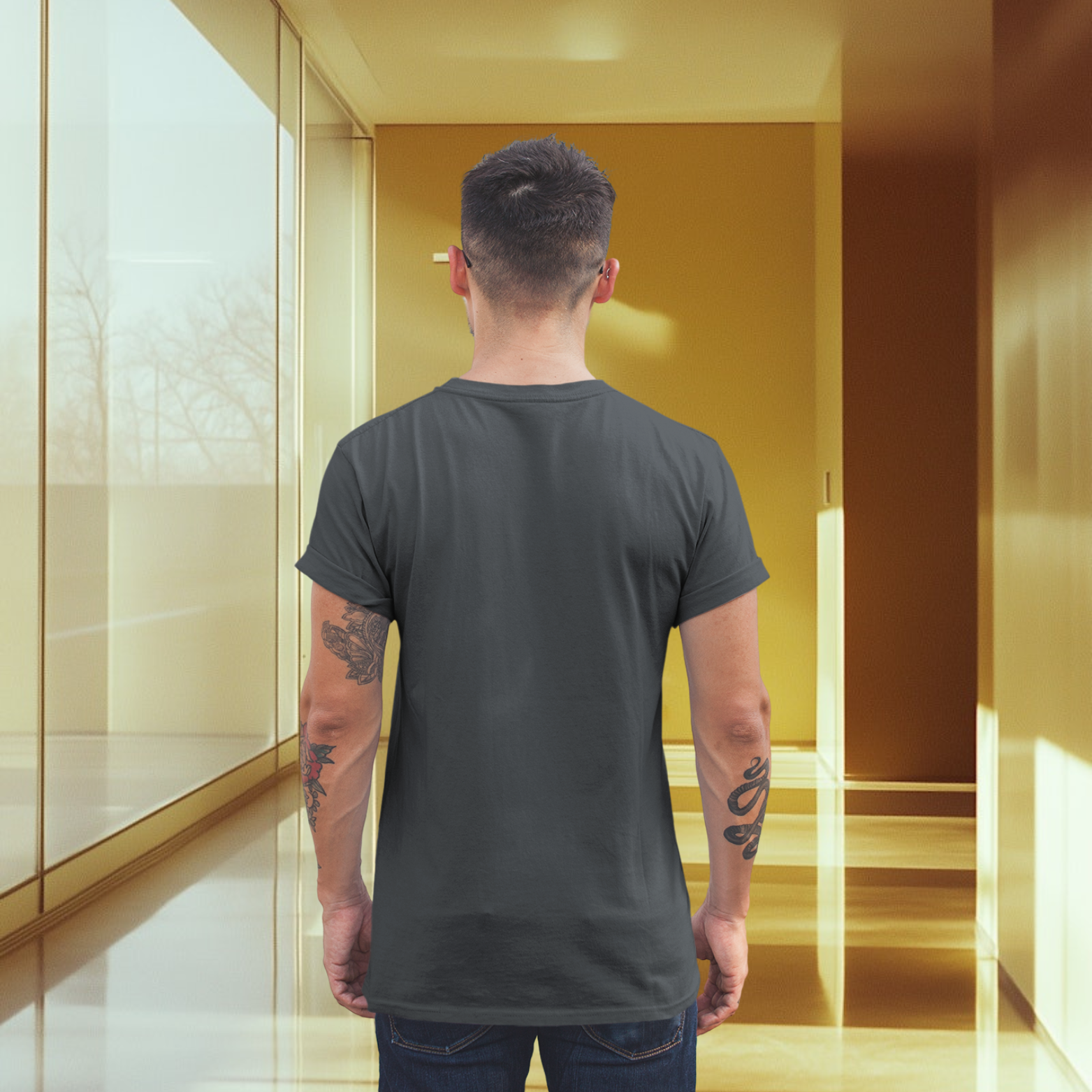 Men back printed round neck half sleeve T-Shirt