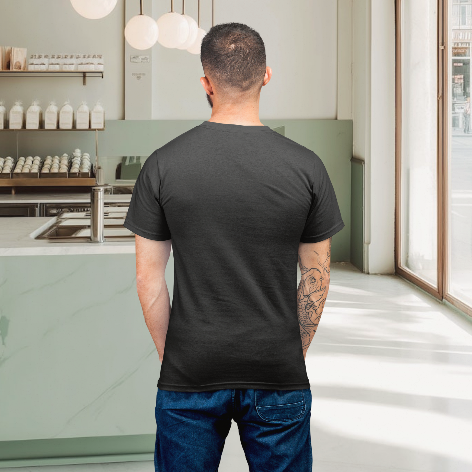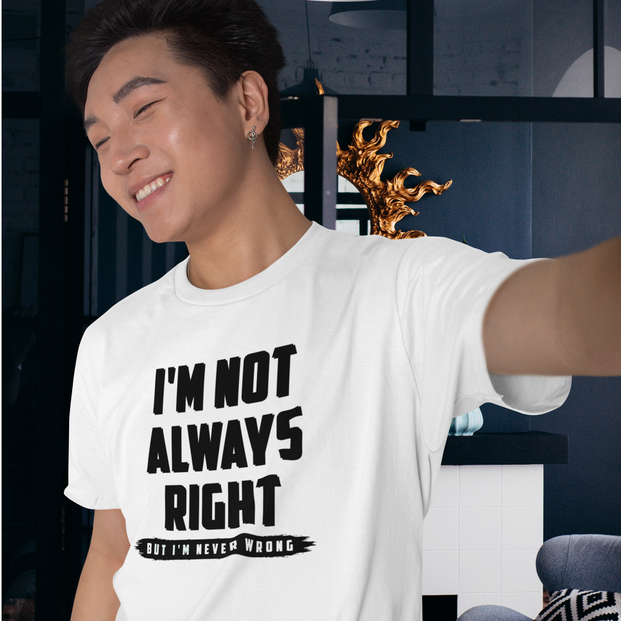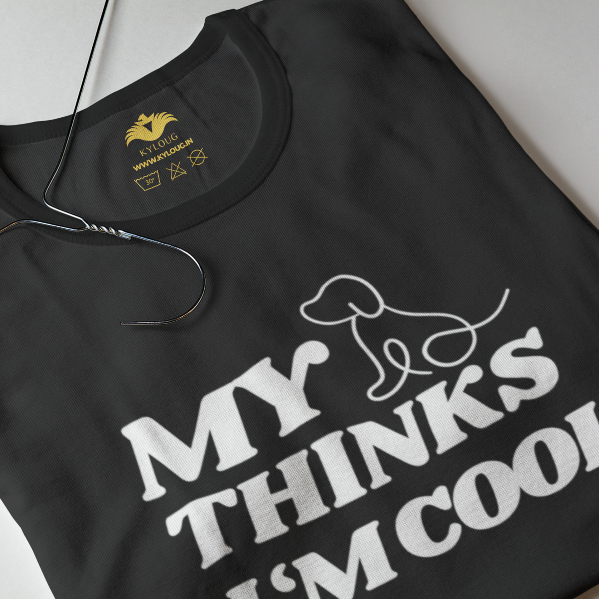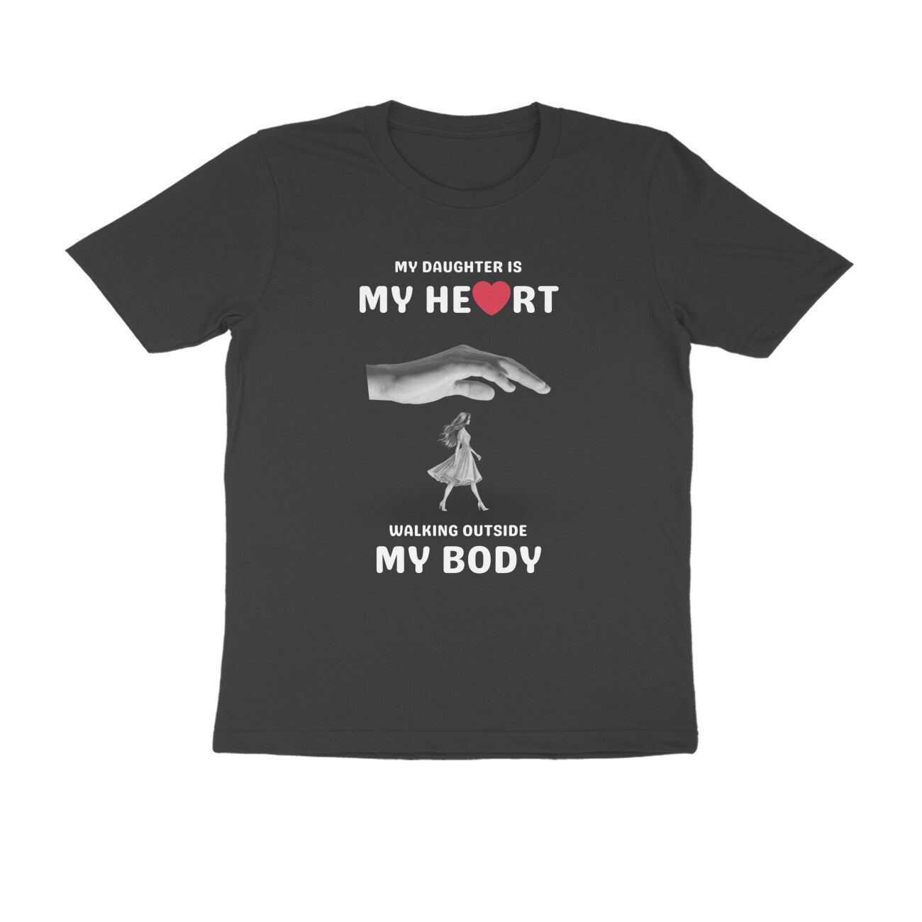 Black round neck T-shirt for men with humorous text