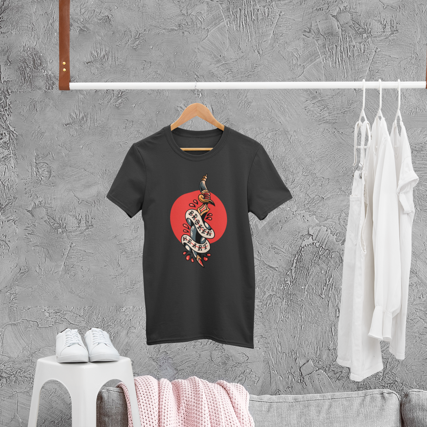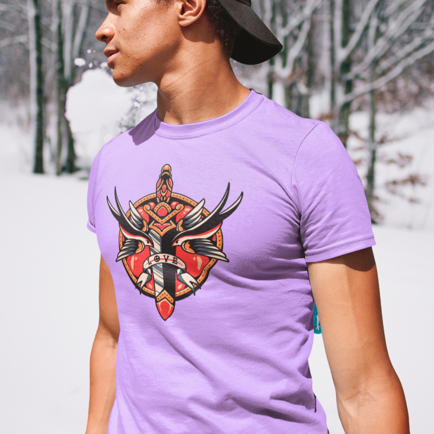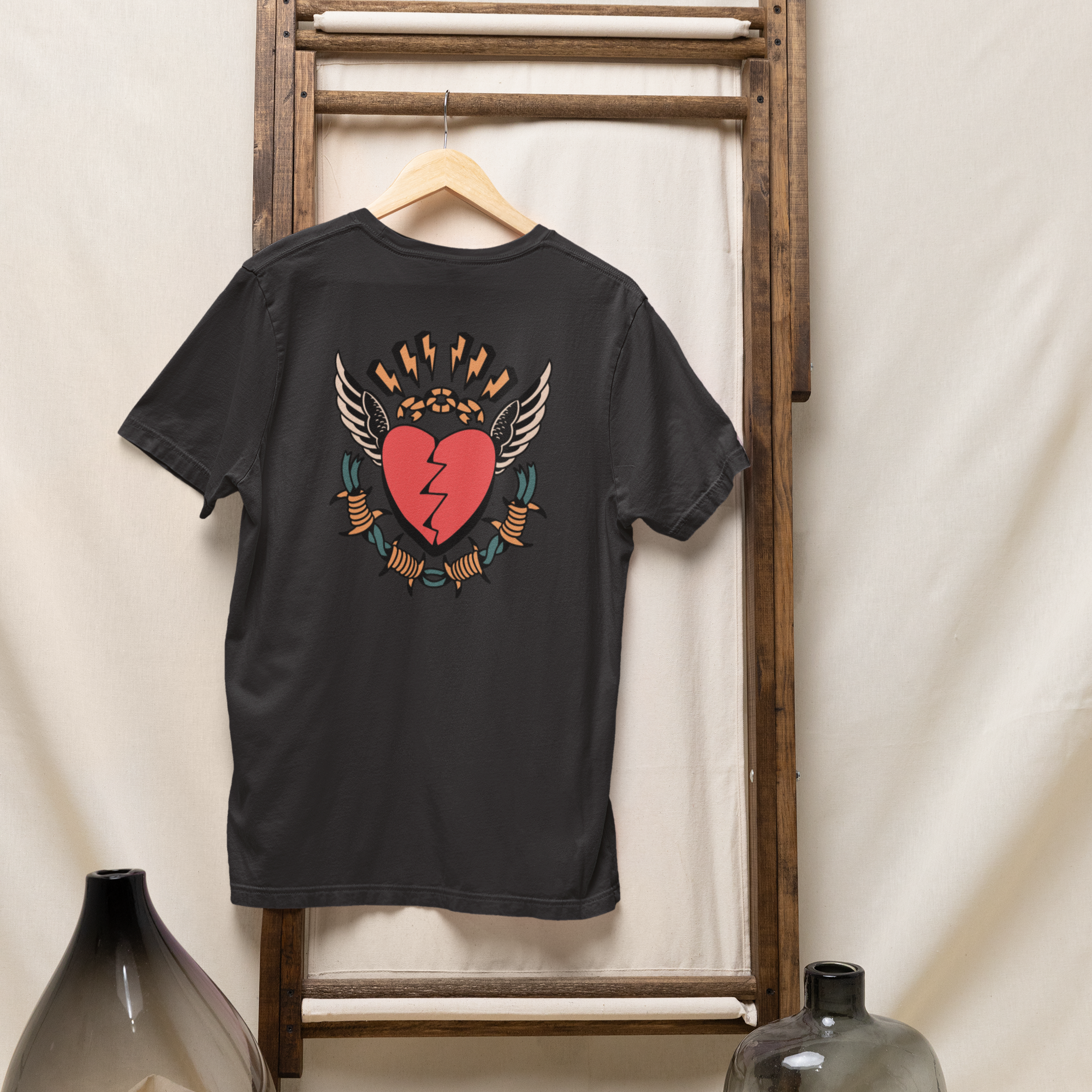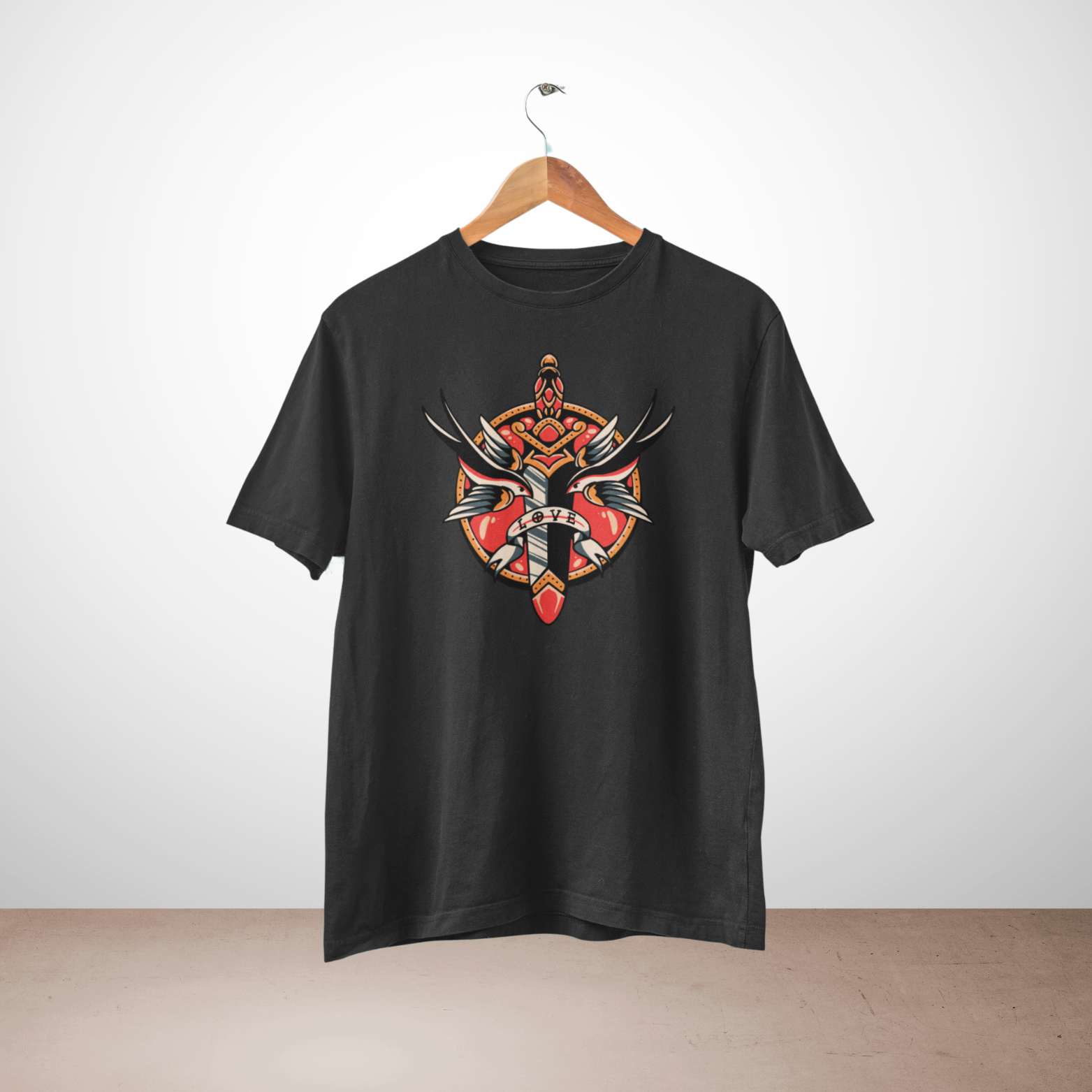 Black round neck T-shirt for men with humorous text