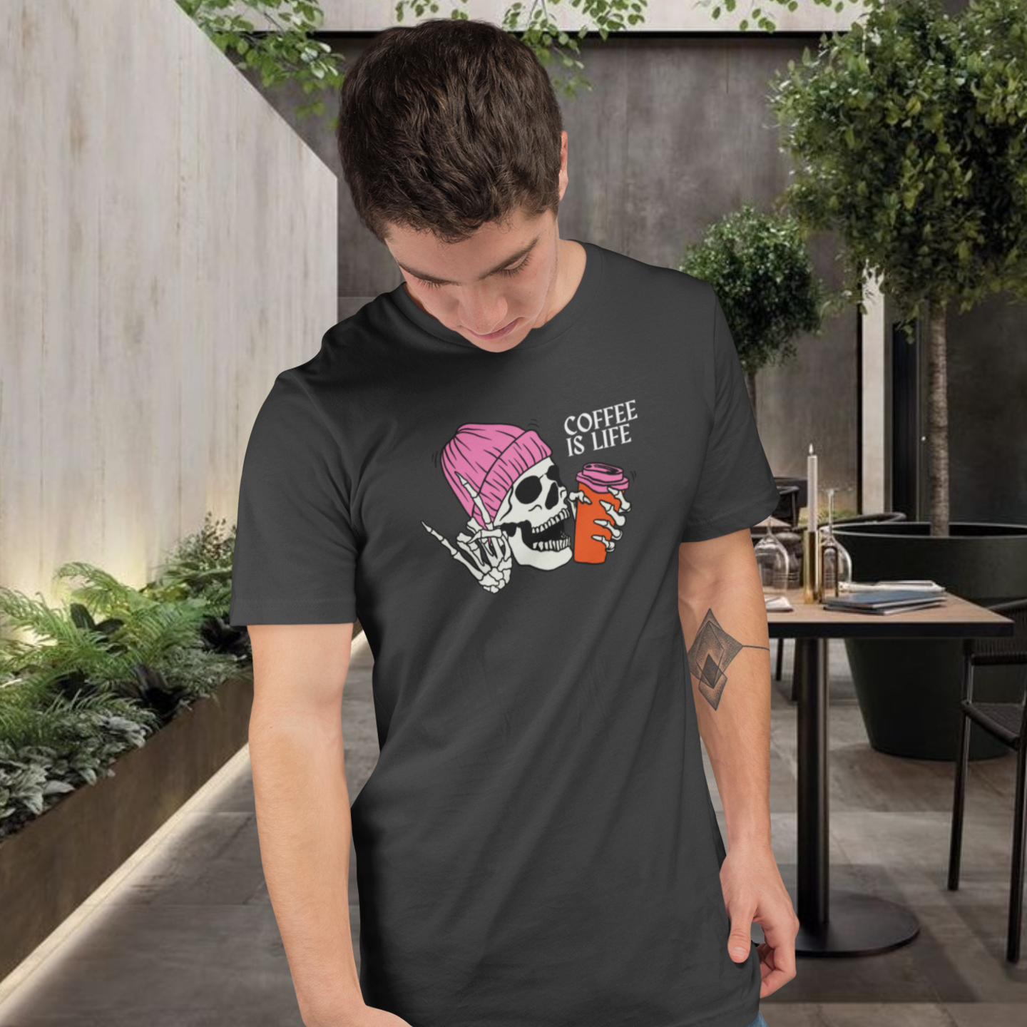 Men coffee lover graphic printed round neck T-Shirt
