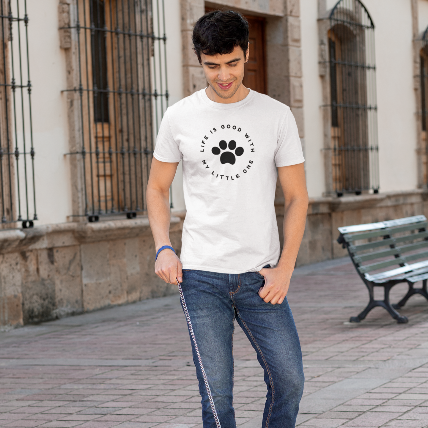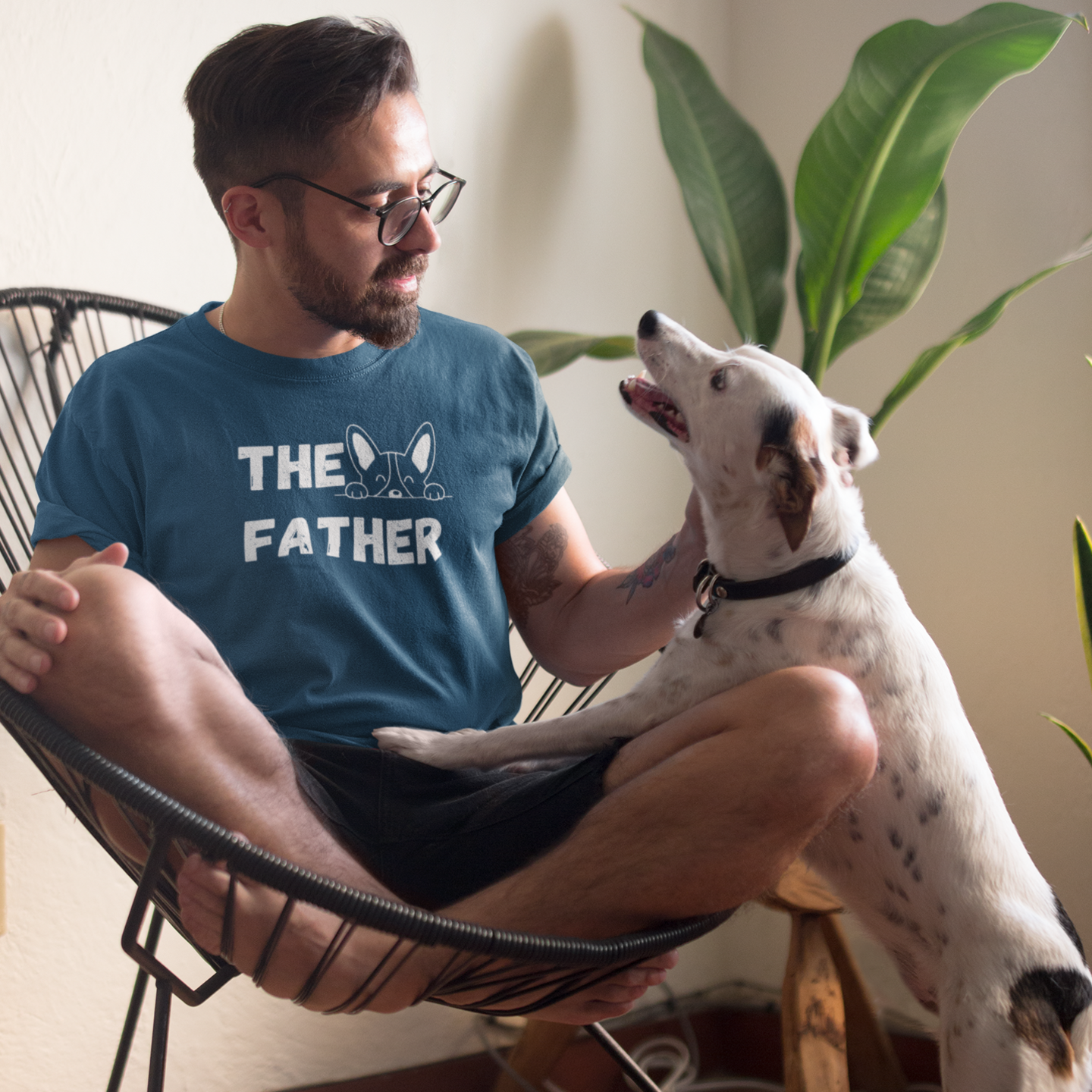 Men dog lover graphic printed round neck T-shirt
