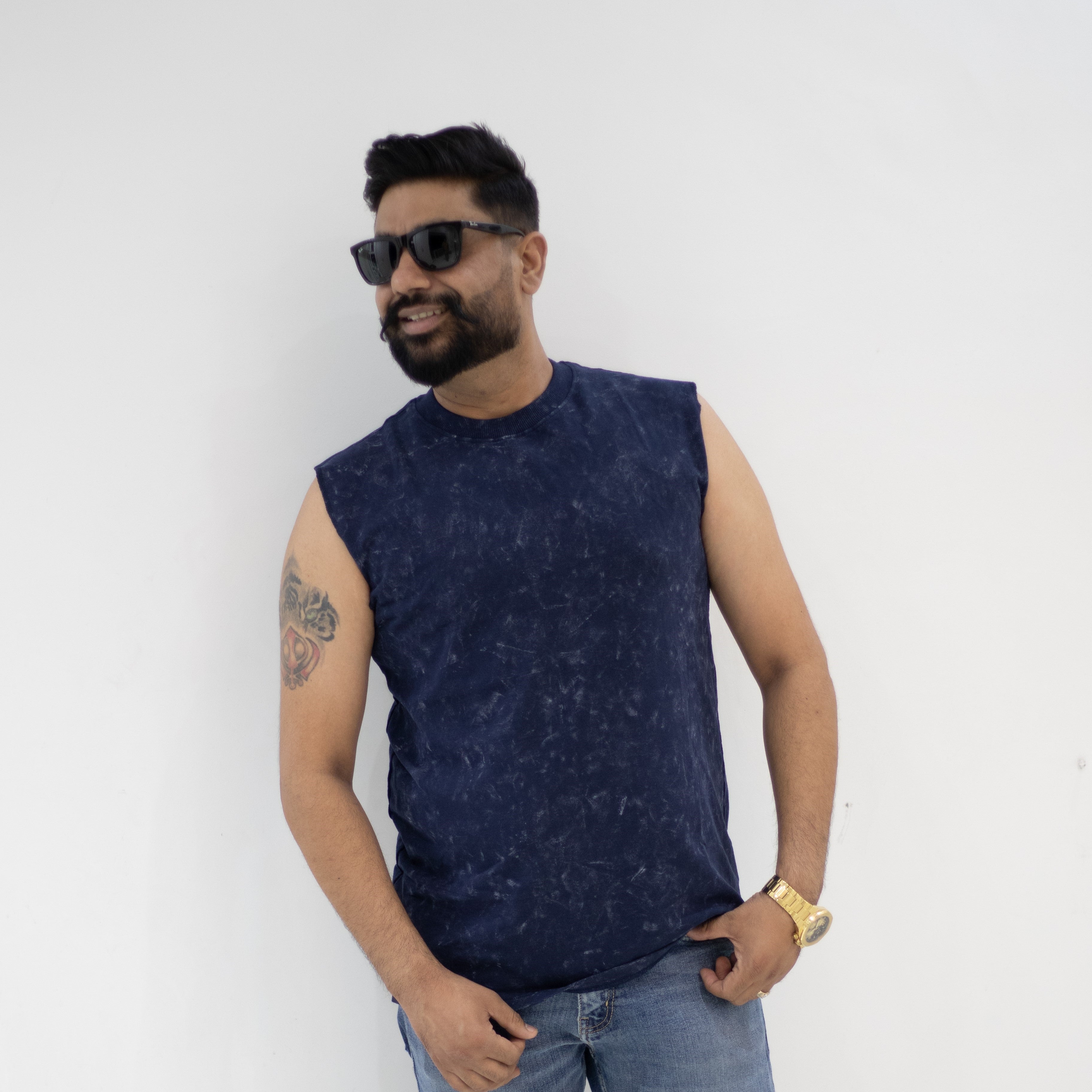 This acid wash navy blue sando sleeveless t-shirt for men is crafted with high-quality materials and features a stylish and modern acid wash design. With its comfortable and breathable sleeveless design, this t-shirt is perfect for warm weather or layering under jackets. Upgrade your wardrobe with this versatile and fashionable piece.
