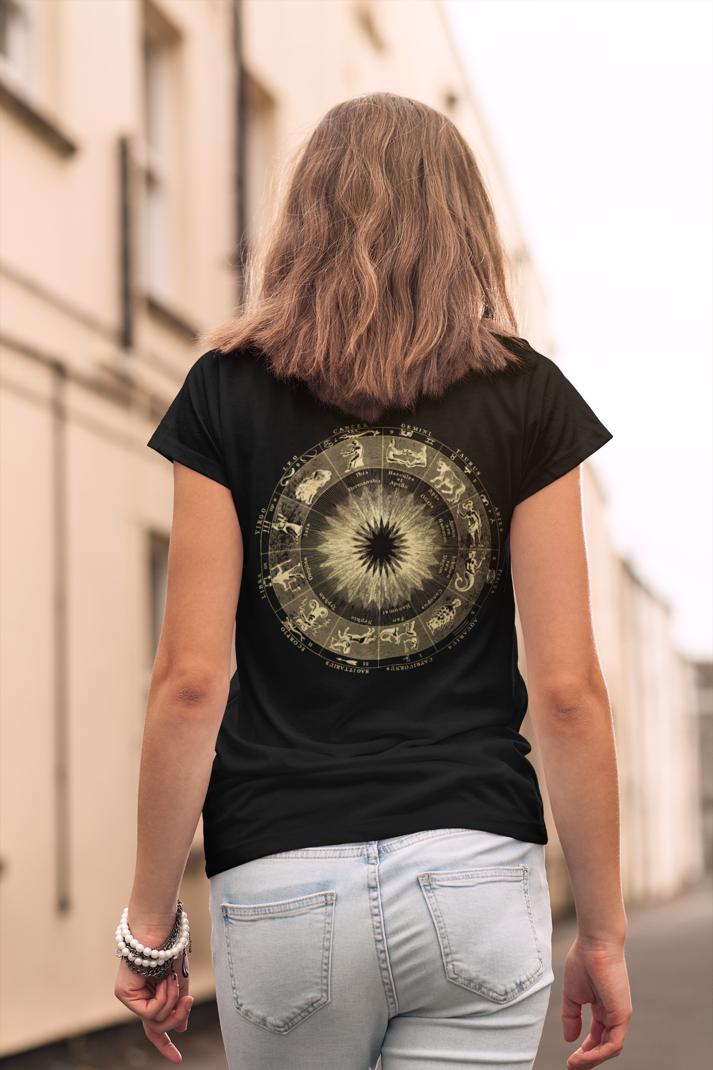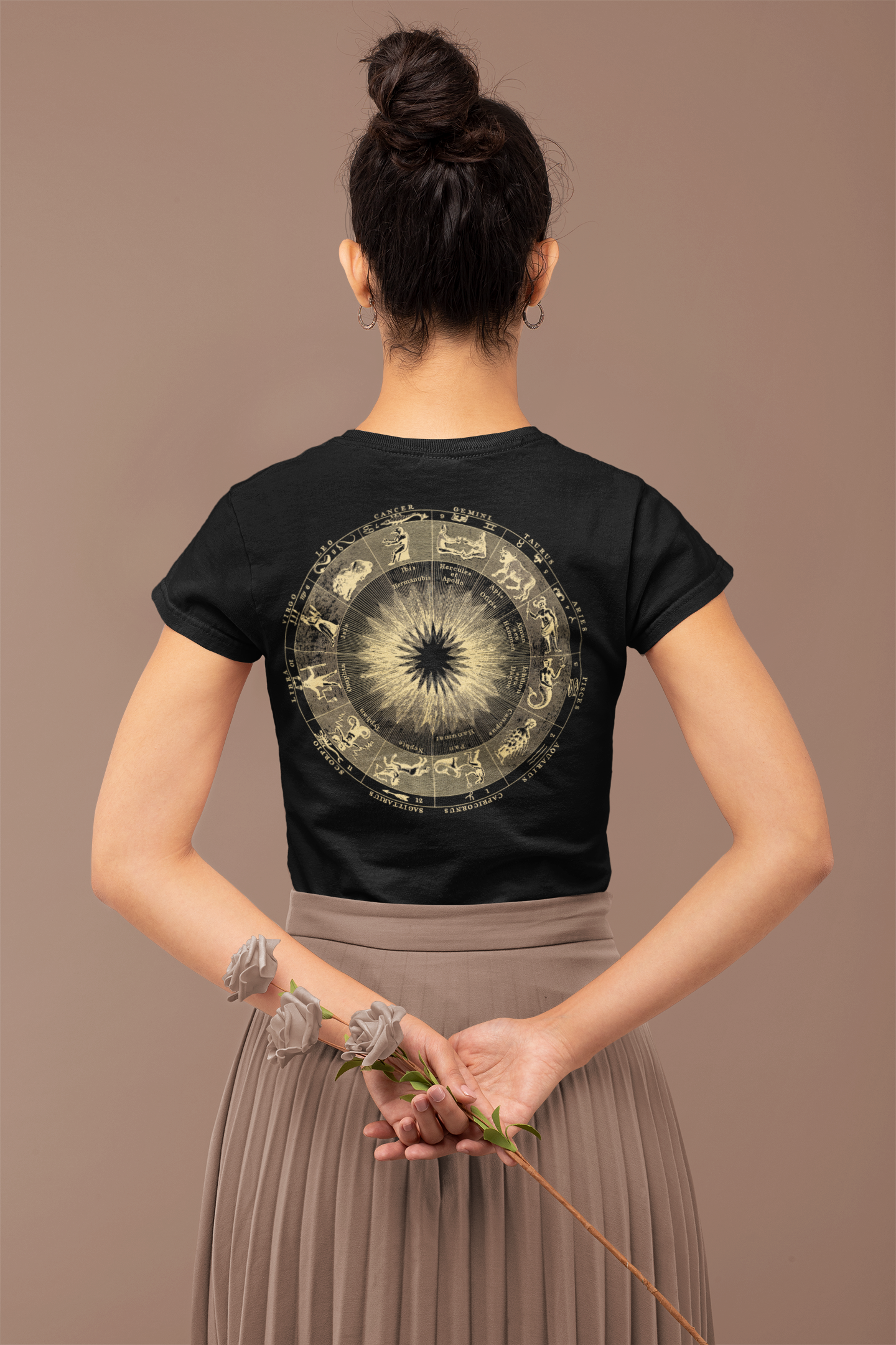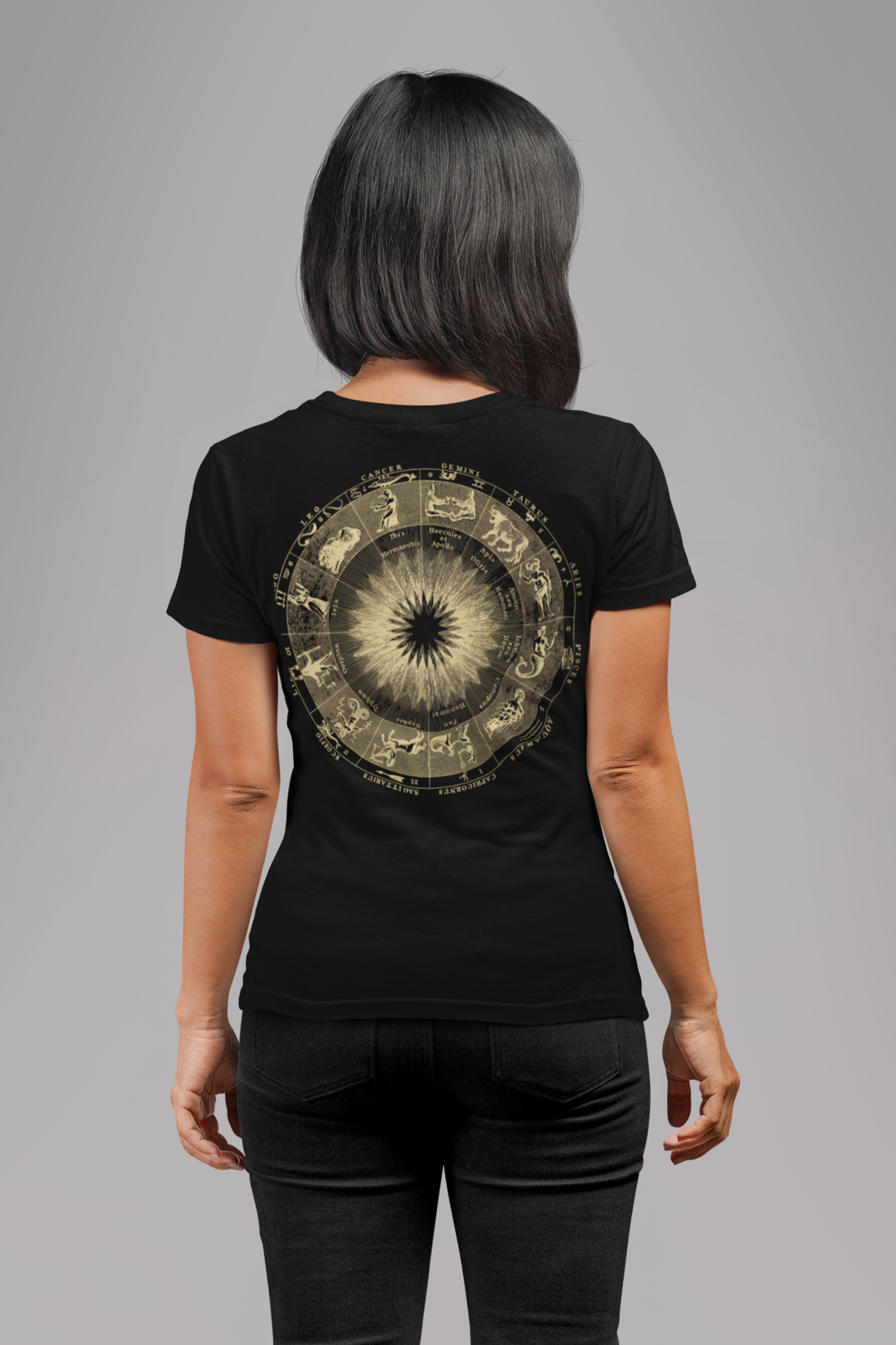 Astrology Graphic Print Half Sleeve Classic Fit Round Neck back print T-shirt for Women