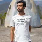 Introducing our humorous text printed round neck t-shirt for men, perfect for adding a touch of wit to any outfit. Made with comfortable fabric and expertly printed, this t-shirt is sure to bring a smile to anyone's face. Available in a variety of sizes.