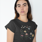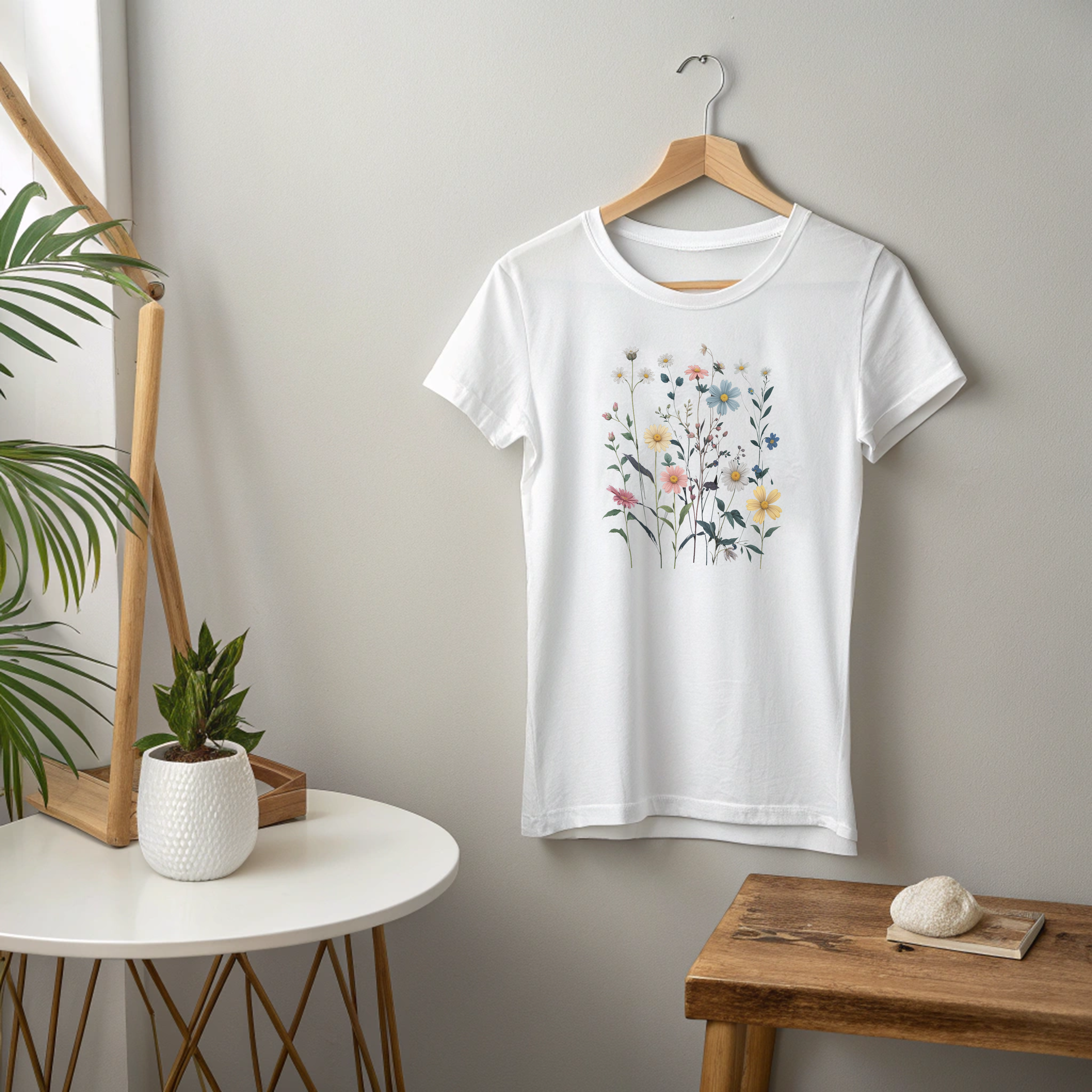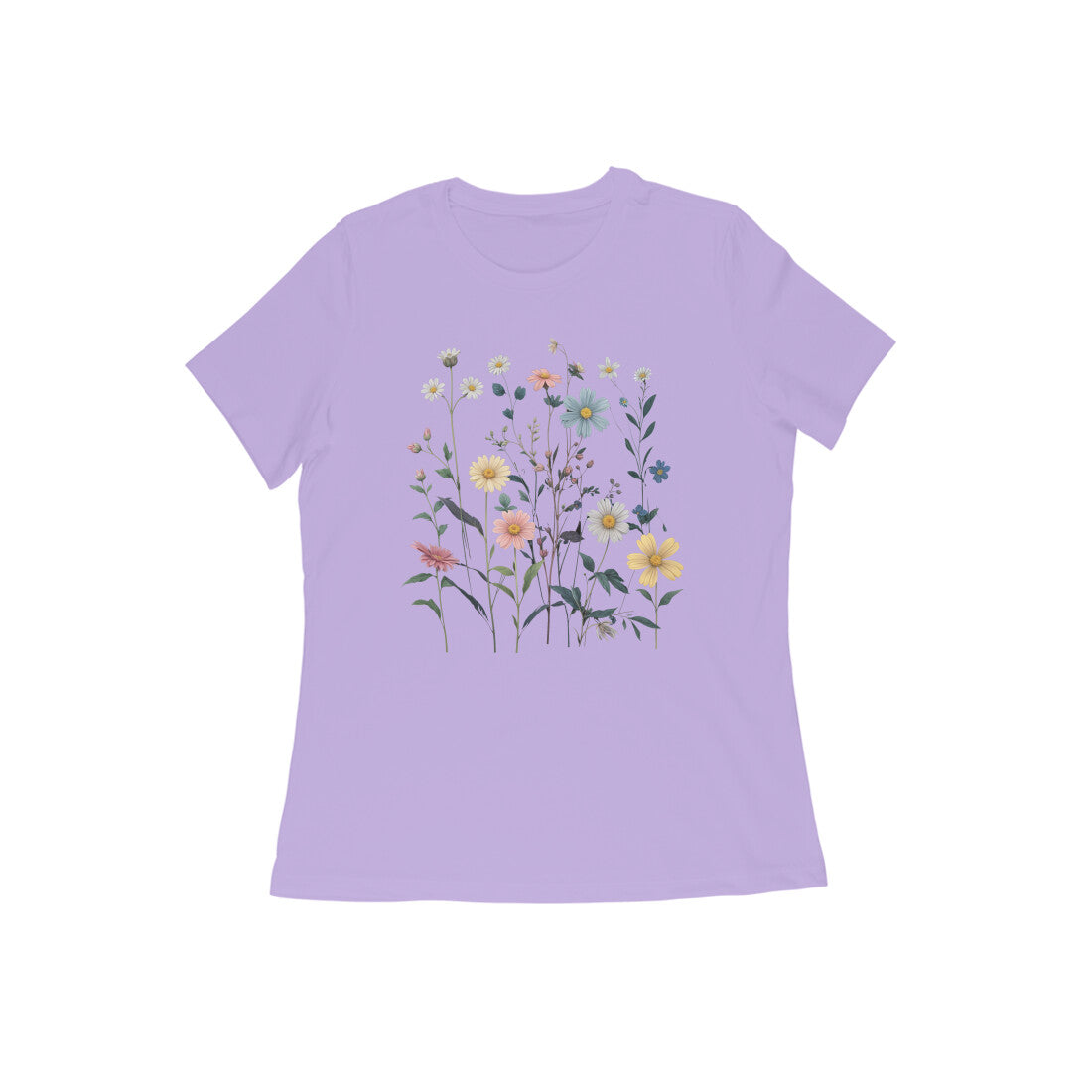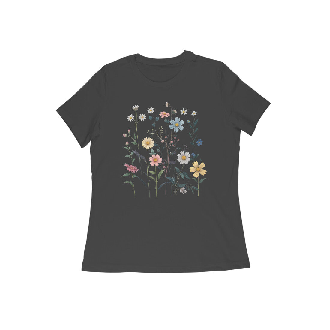Blossoms printed crew neck half sleeve T-shirt for Women.