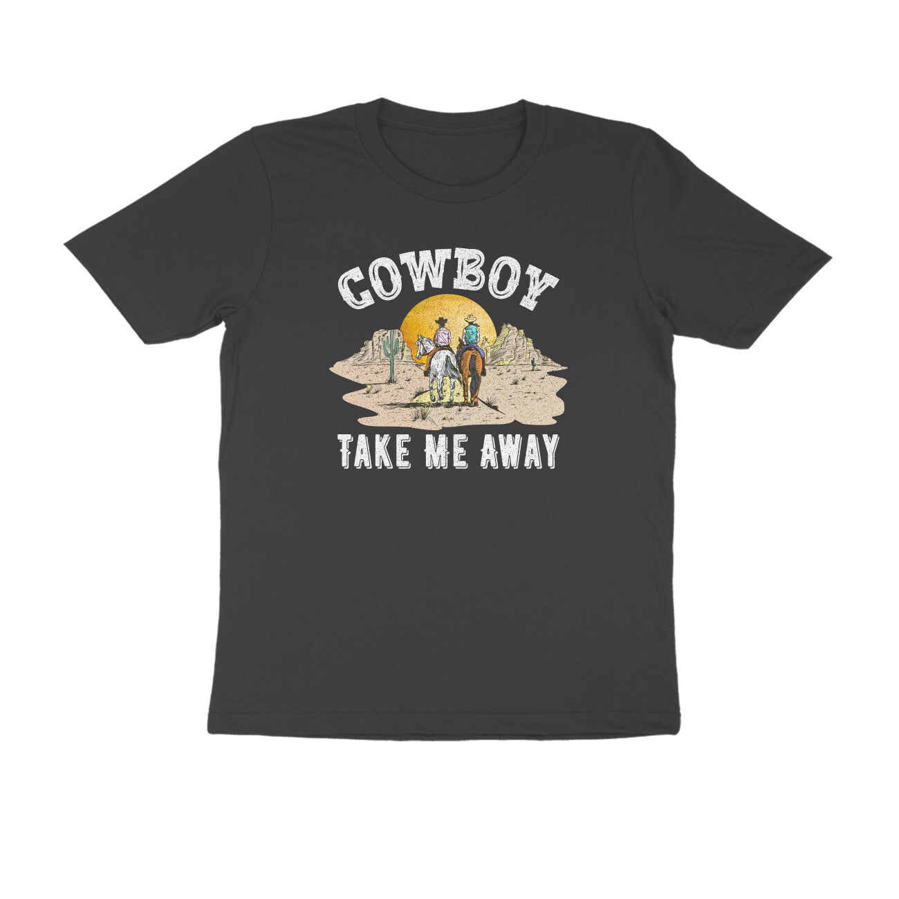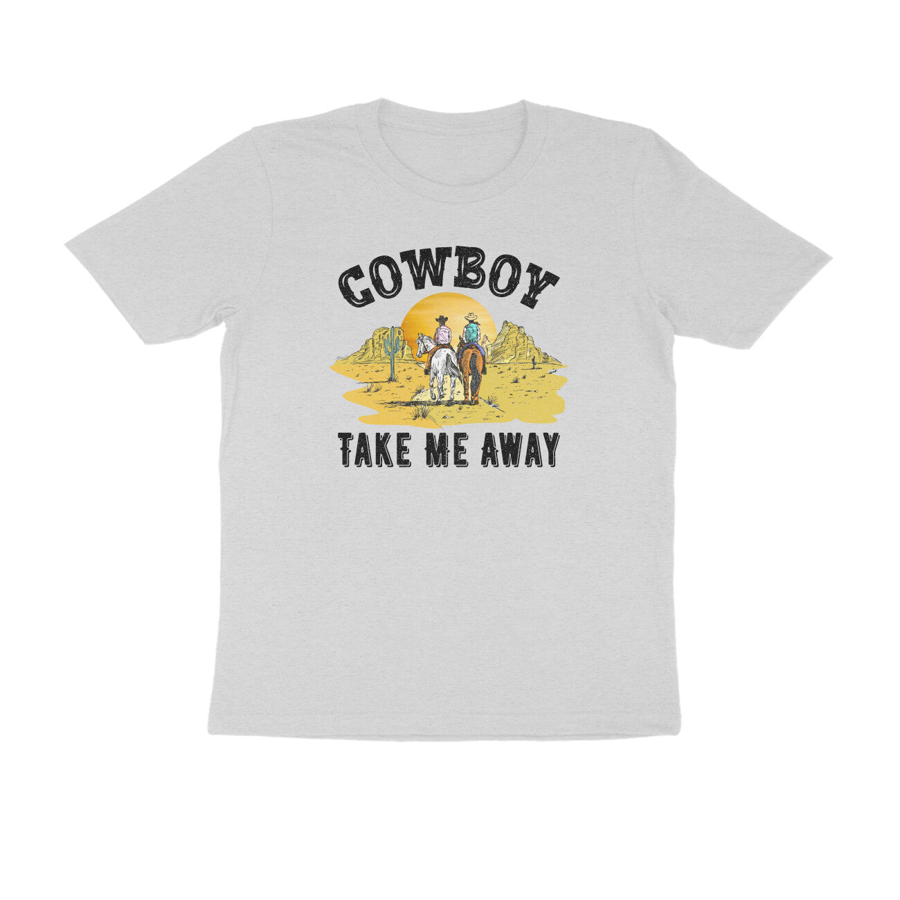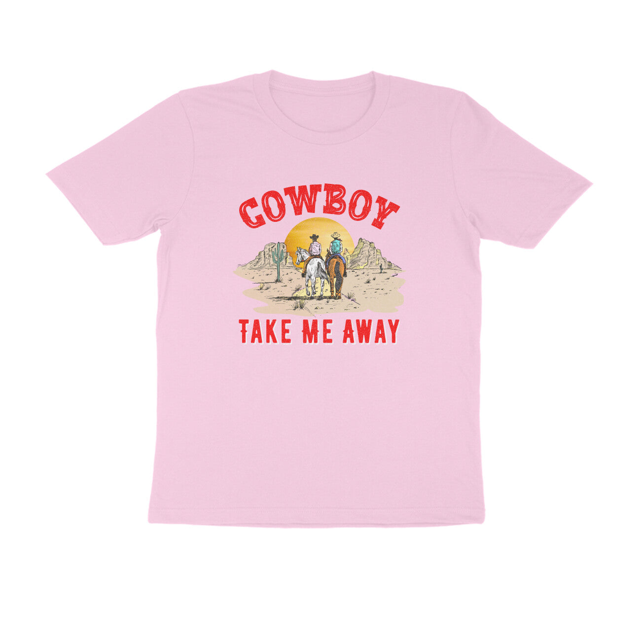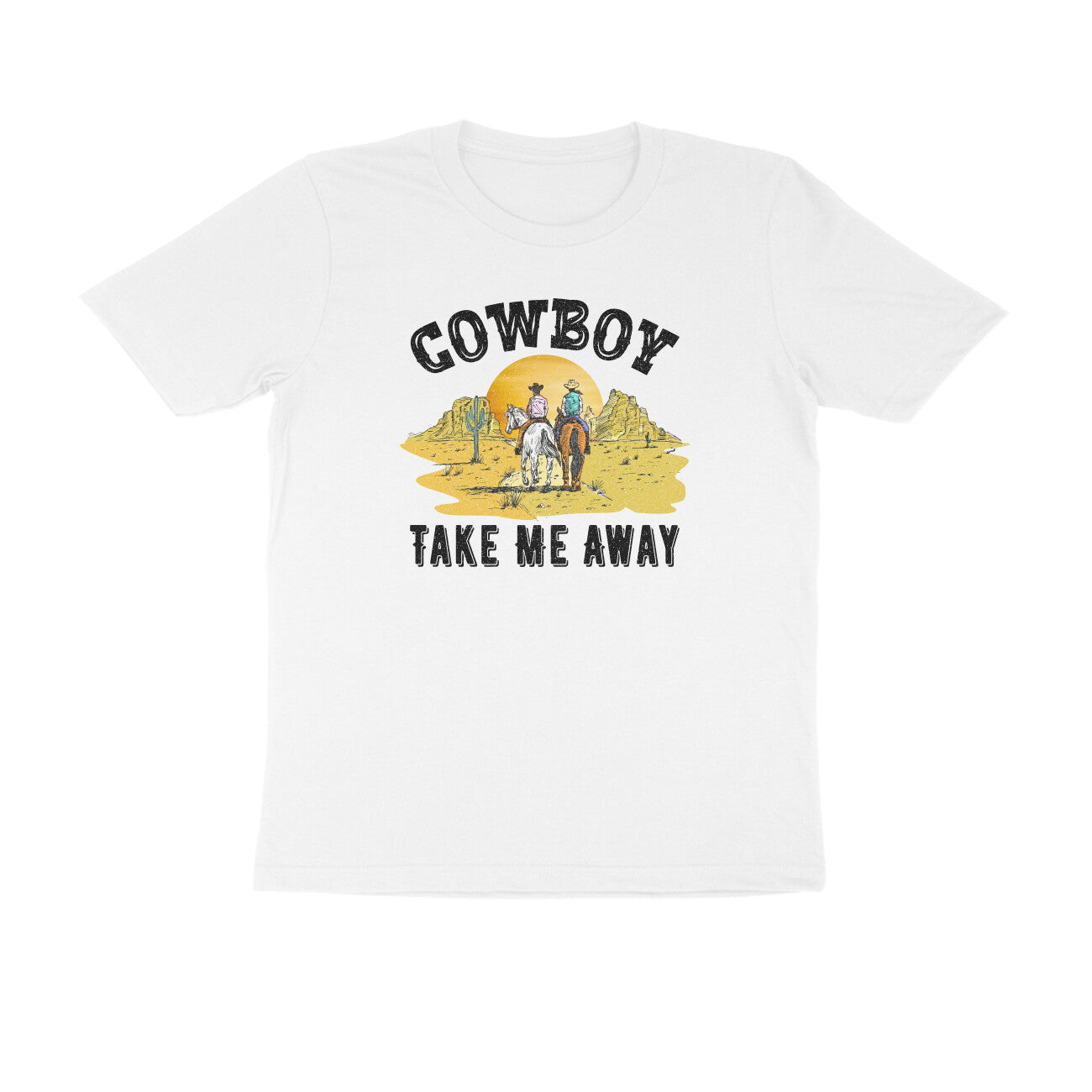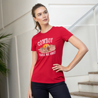 This Cowboy printed round neck t-shirt for Women features a stylish design that is perfect for any cowgirl. Made with high-quality materials, this t-shirt is both comfortable and durable. Show off your love for the wild west with this unique and eye-catching t-shirt.