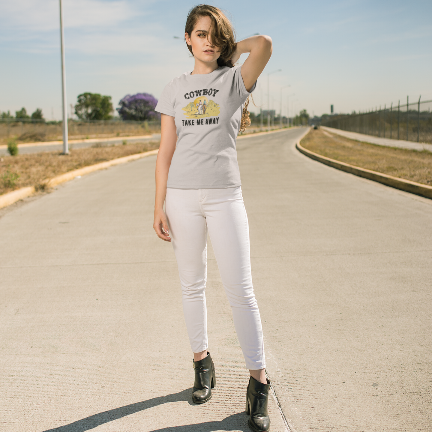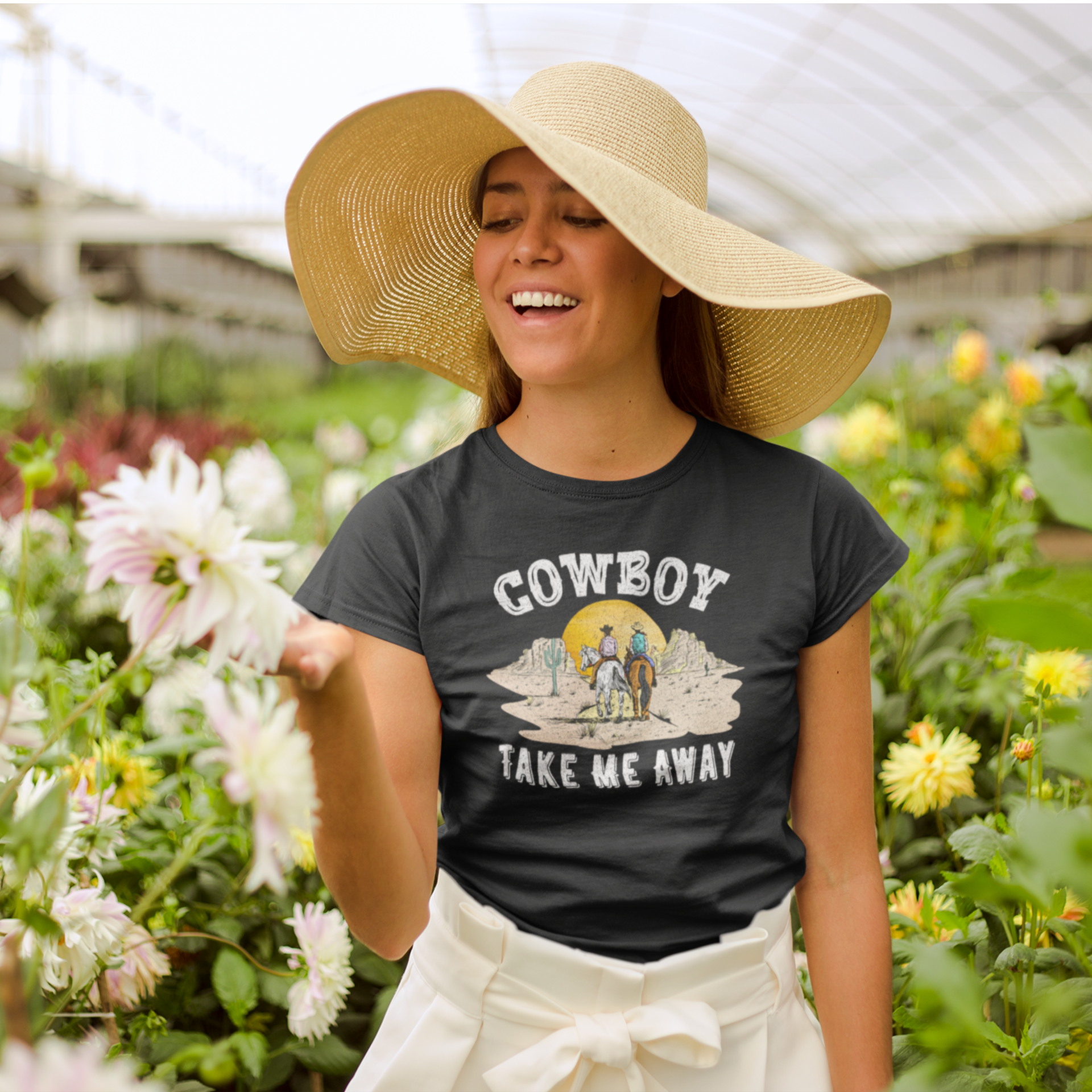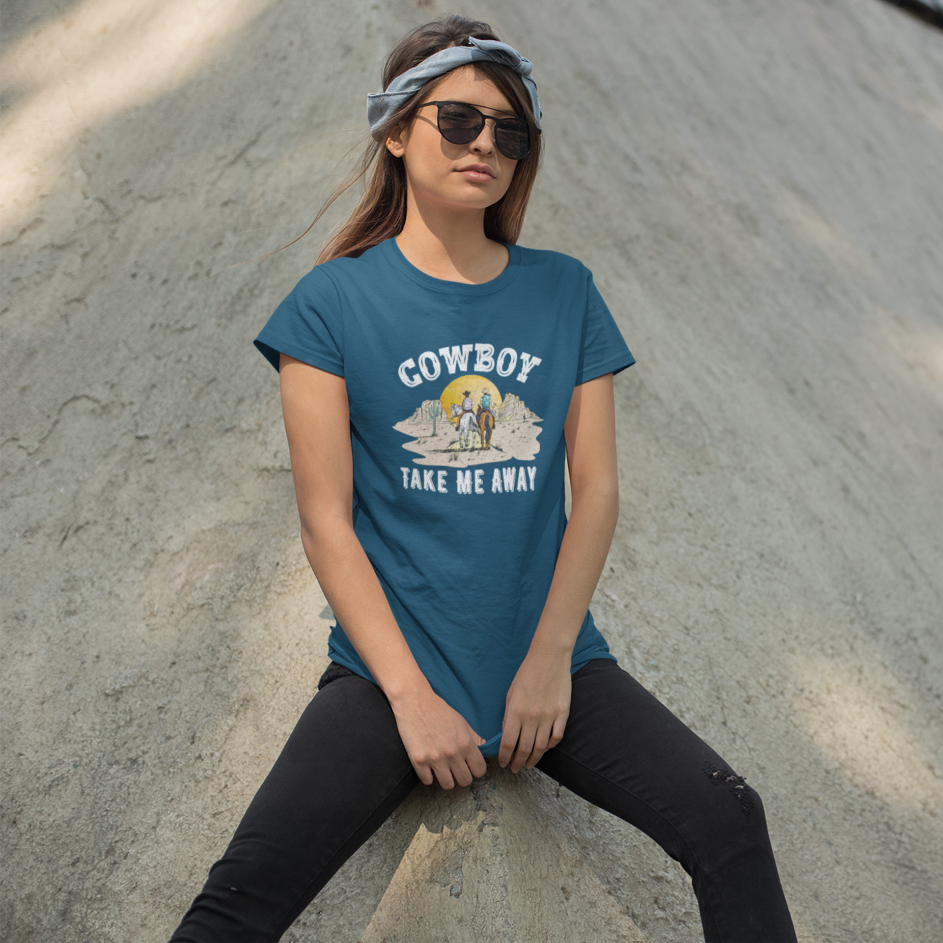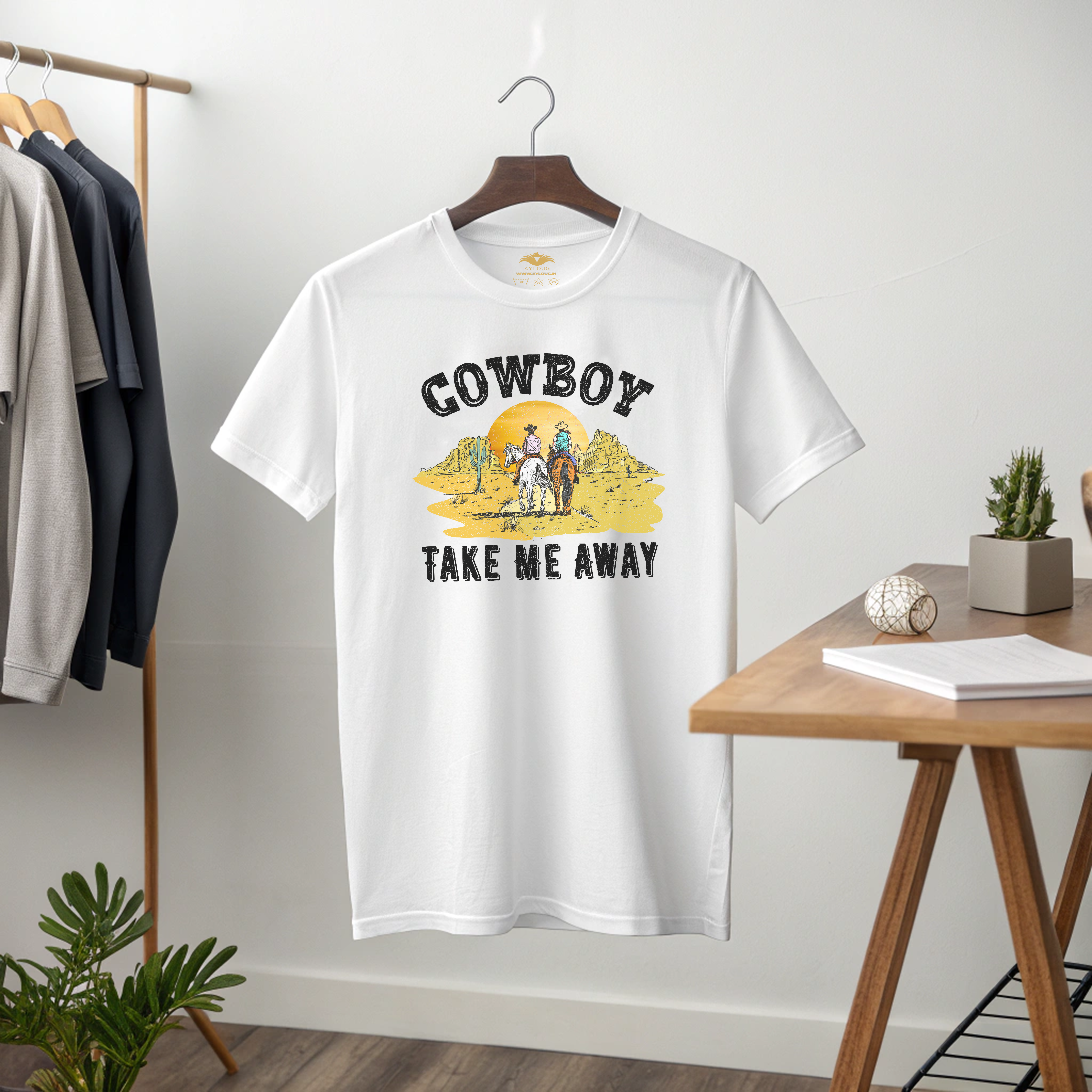 This Cowboy printed round neck t-shirt for Women features a stylish design that is perfect for any cowgirl. Made with high-quality materials, this t-shirt is both comfortable and durable. Show off your love for the wild west with this unique and eye-catching t-shirt.