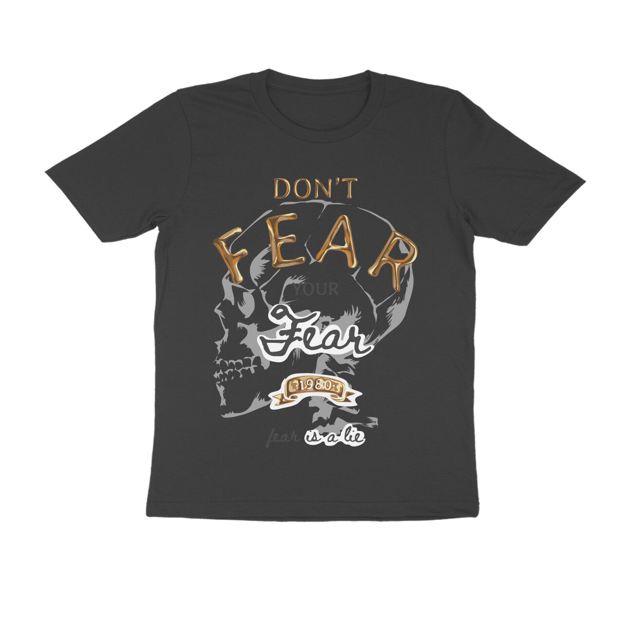 Don't Fear-Black Graphic Printed Half Sleeve Street Wear Regular Fit Tshirt for Men Elevate your casual wardrobe with this striking streetwear essential. Featuring a bold graphic print that commands attention, this half-sleeve t-shirt combines contemporary design with everyday wearability. The regular fit silhouette offers a balanced cut that works across various body types, providing comfort without excess fabric. Crafted for the modern man who values both style and substance, this piece transitions seamlessly from street to social settings. The black base ensures versatility, pairing effortlessly with jeans, chinos, or layered pieces. Whether you're building a streetwear collection or seeking a statement casual tee, this graphic-printed design delivers authentic urban aesthetic with practical comfort for all-day wear.