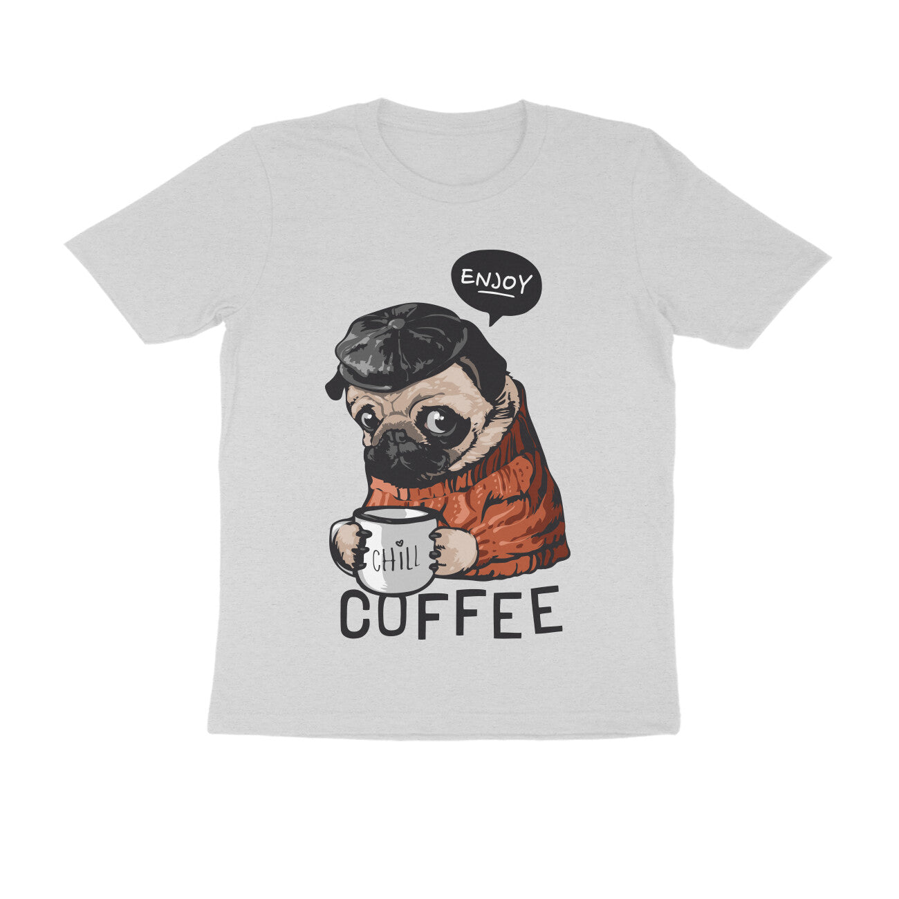 Enjoy Coffee-Grey Half Sleeve Round Neck Street Wear Regular Fit Tshirt for Men