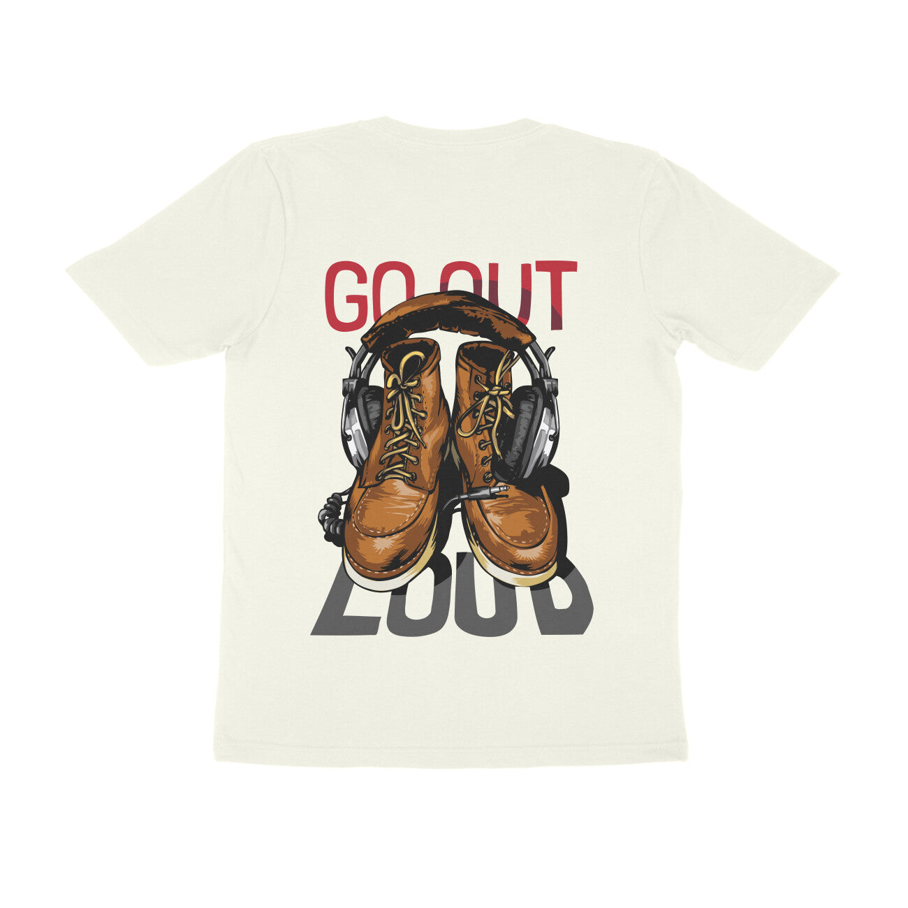 Go out Loud-Ivory Back Graphic Printed Half Sleeve Street Wear Regular Fit Tshirt for Men