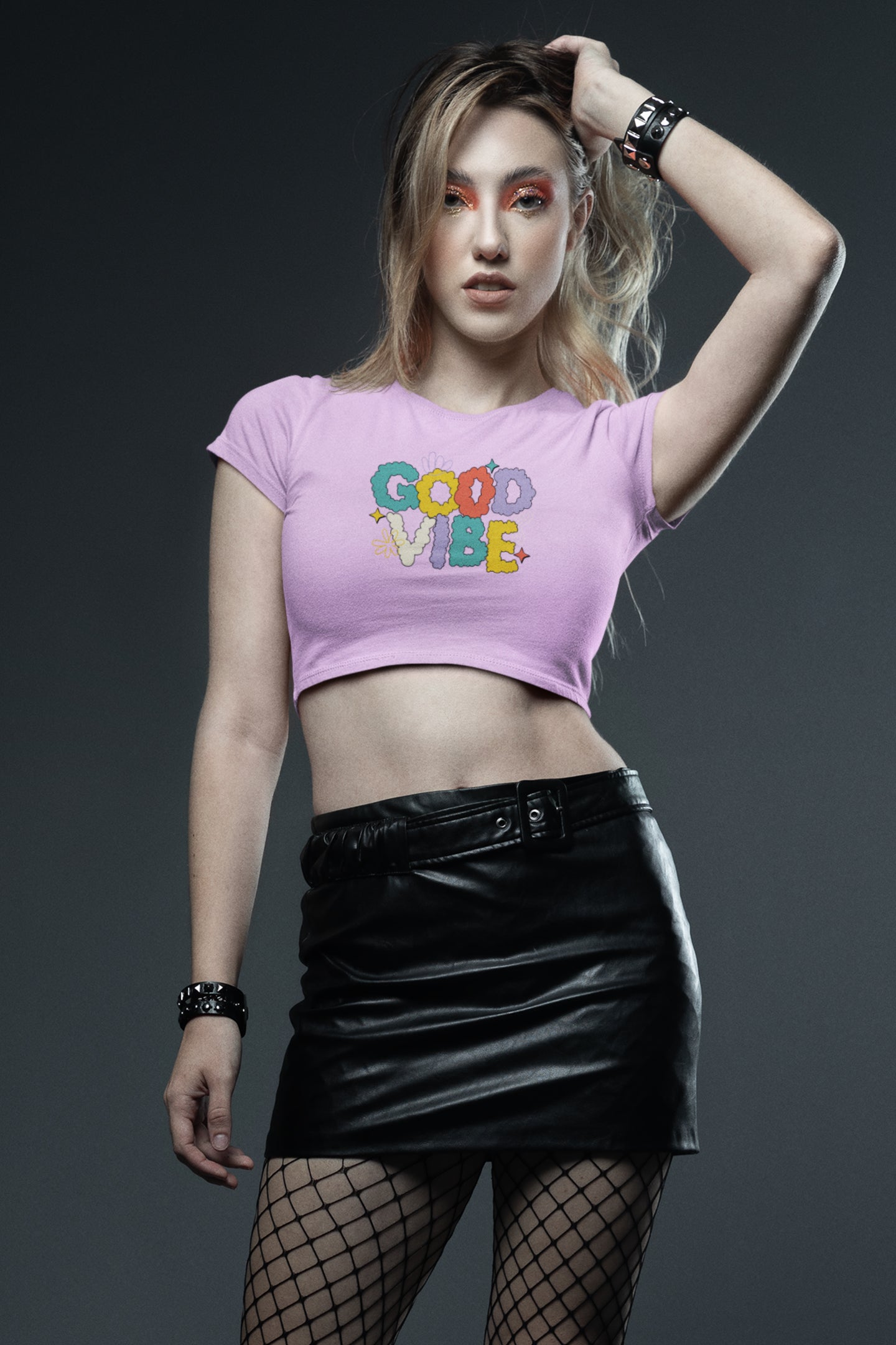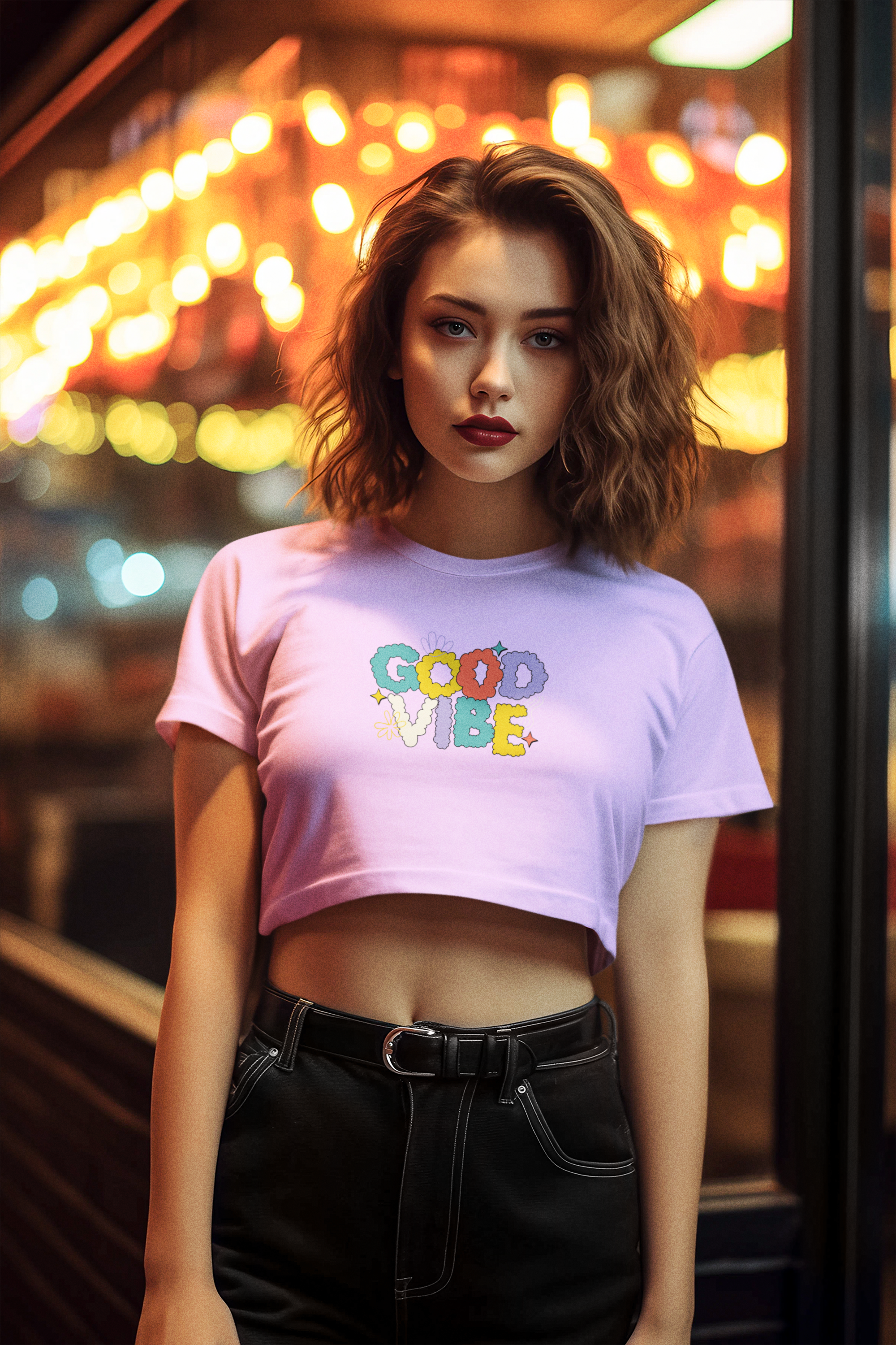 Good Vibe-Crop Top Round Neck Half Sleeve