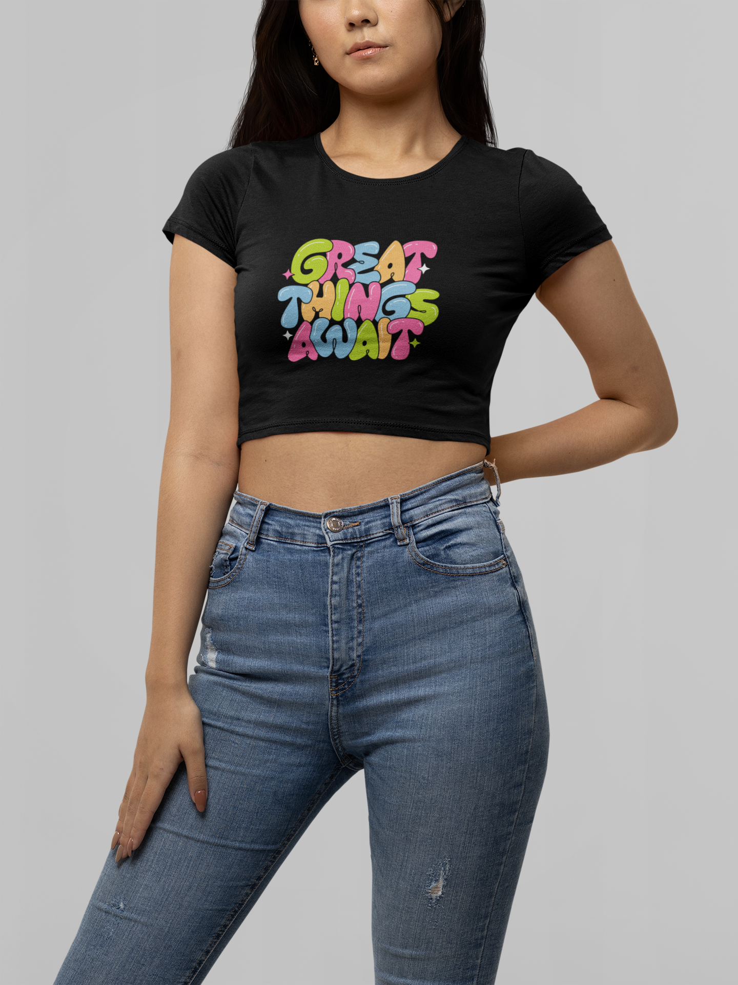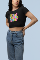 Great Things Await Round Neck Half Sleeve Crop Top