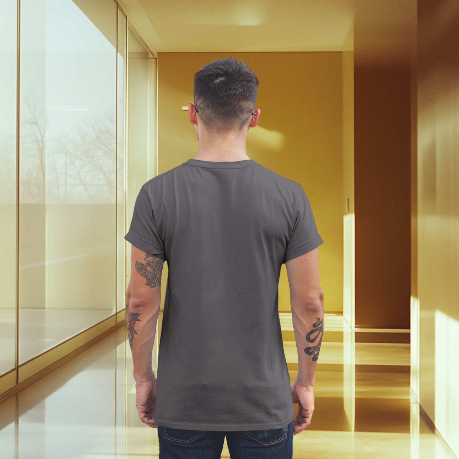 This men's round neck t-shirt features a humorous text print that adds a touch of fun to your wardrobe. Made with quality materials, it offers both style and comfort. Perfect for casual outings or a relaxed day at home. Upgrade your t-shirt game with this playful and comfortable option.