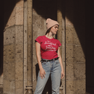 This Humor text based Printed Crew Neck T-Shirt for Women is a playful and stylish addition to any wardrobe. Made with high-quality materials, this shirt is perfect for everyday wear. The unique print adds a touch of humor to your outfit, making it a fun conversation starter. Perfect for those looking for a mix of comfort and style.