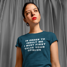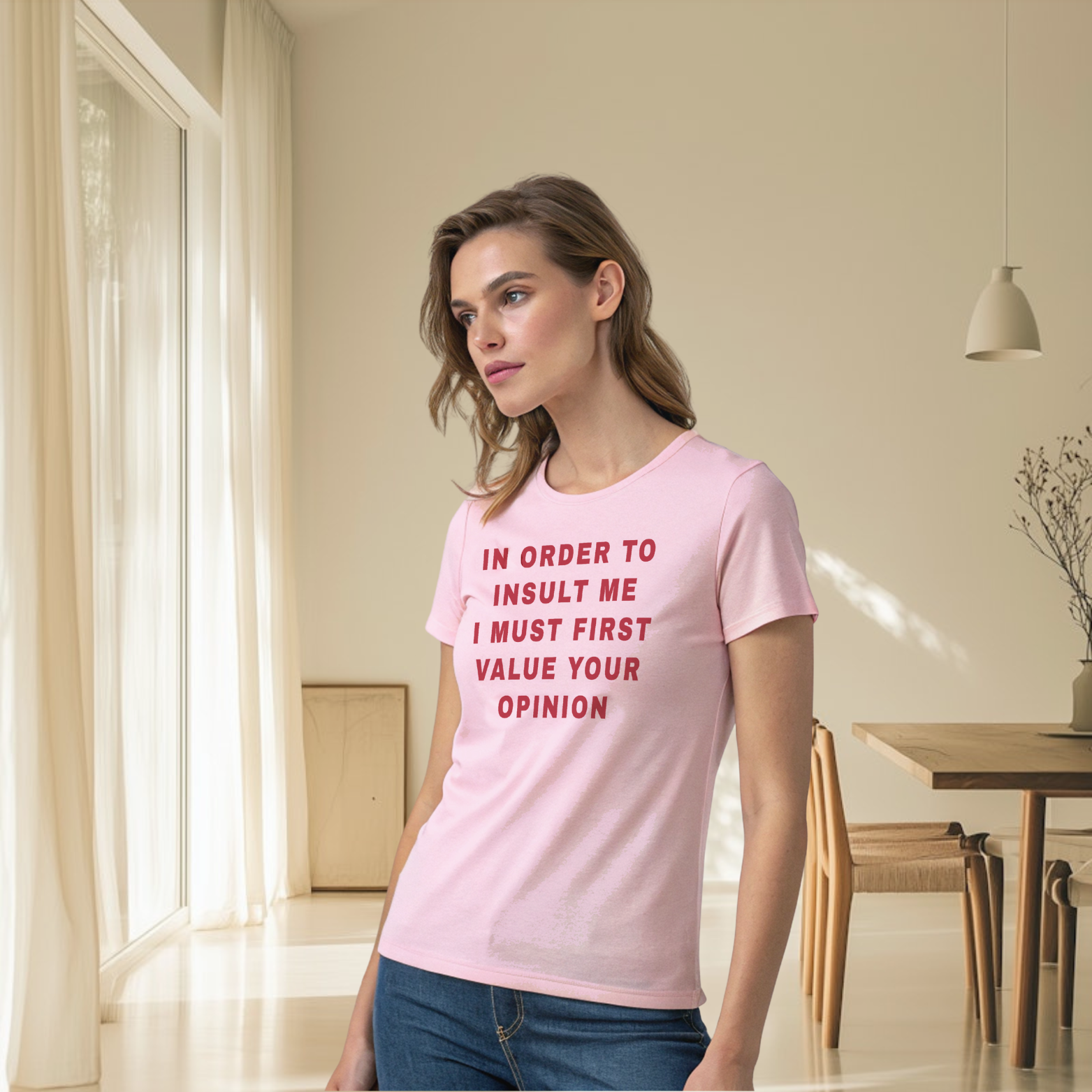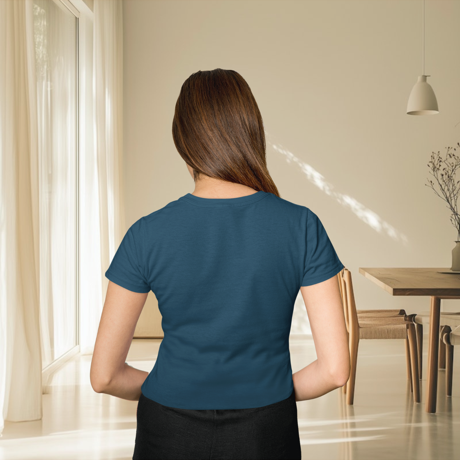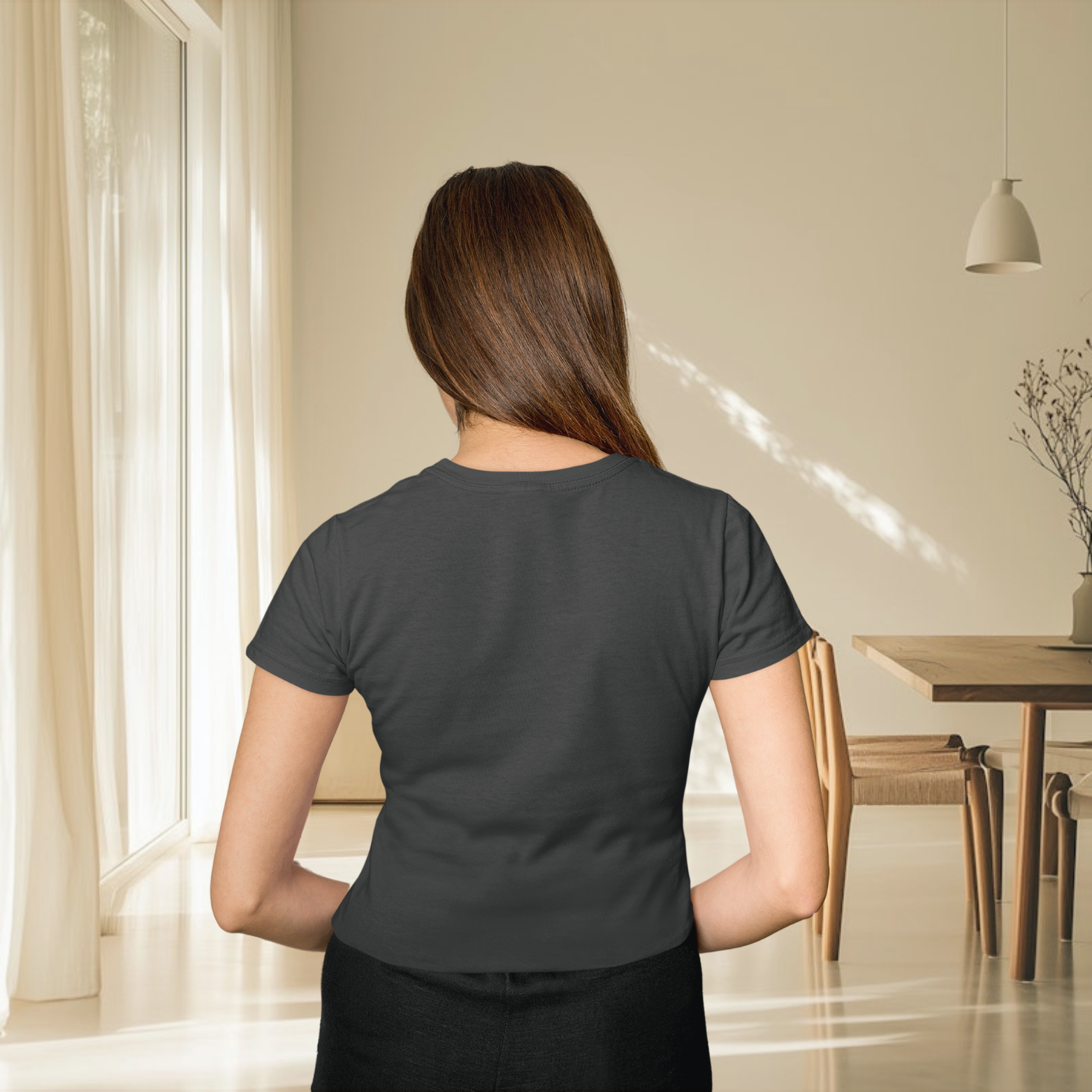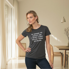 Crafted for women who love to add a touch of humor to their style, this crew neck t-shirt features a playful text print. Made with comfort in mind, it is perfect for everyday wear. Express your unique personality with this fun and trendy t-shirt.
