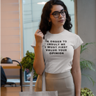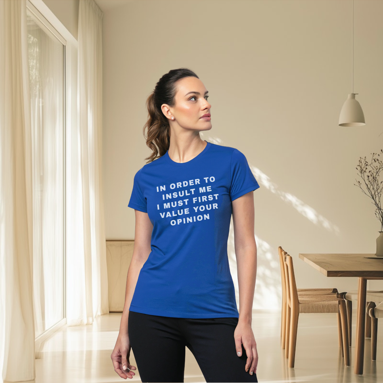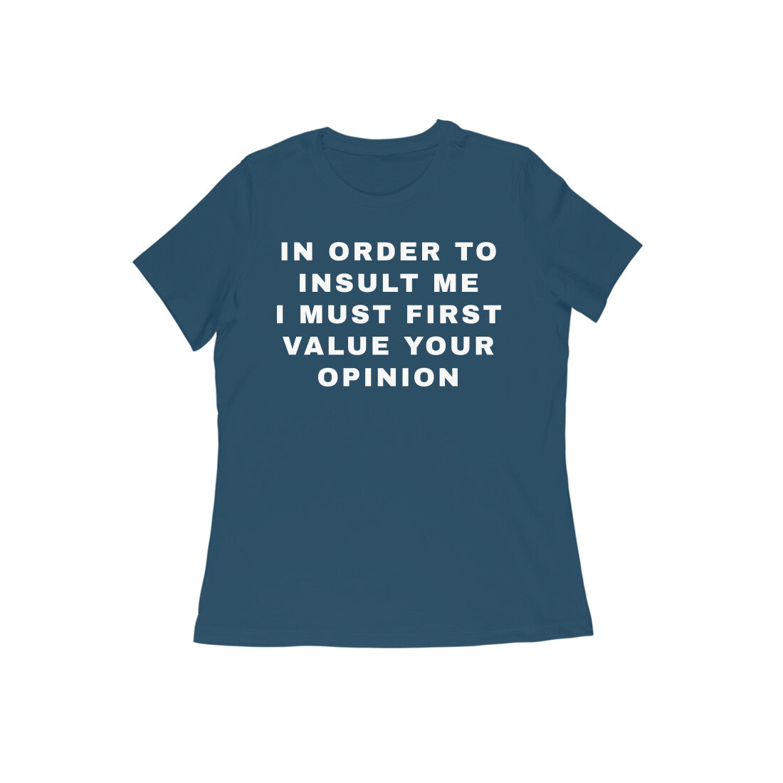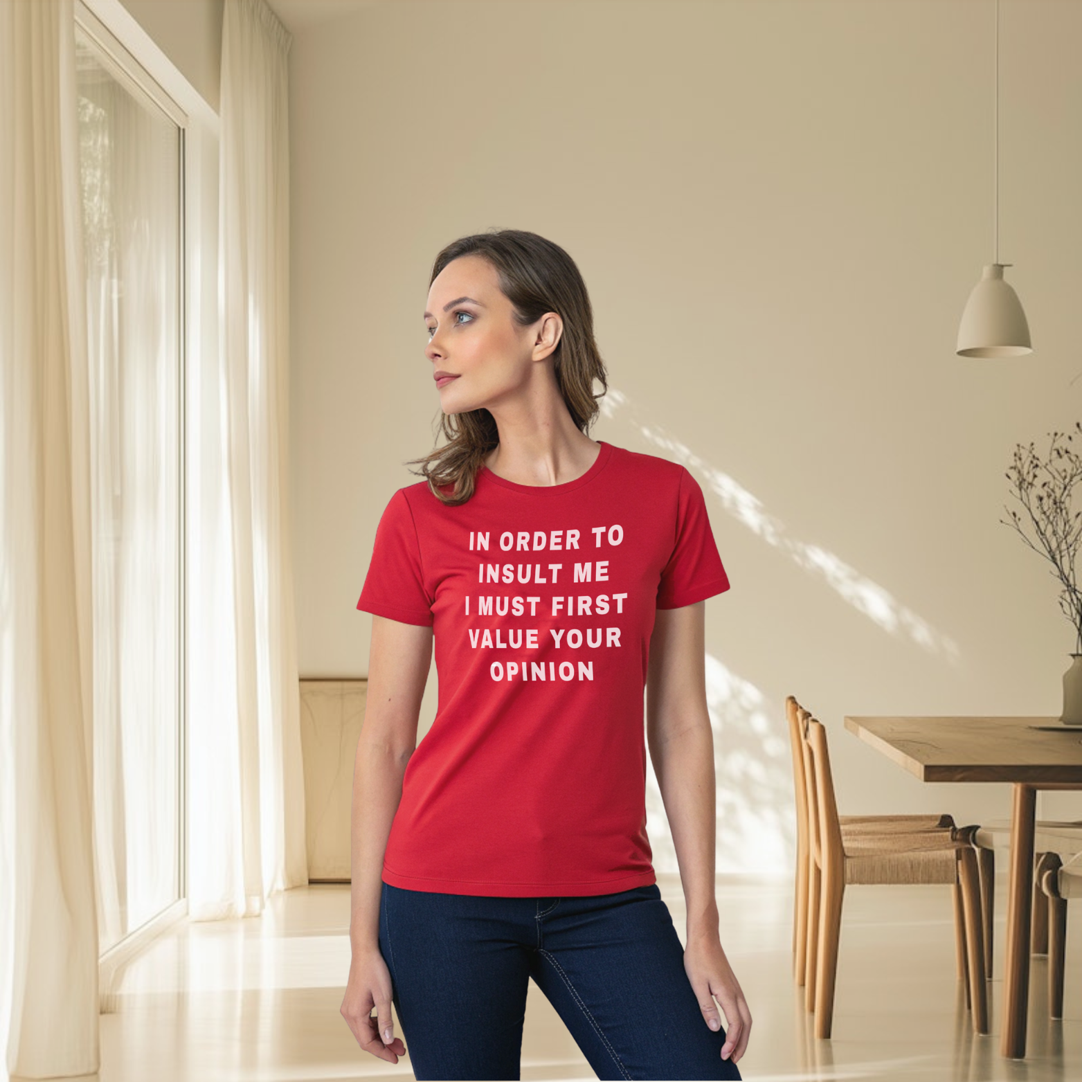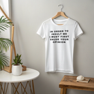 Crafted for women who love to add a touch of humor to their style, this crew neck t-shirt features a playful text print. Made with comfort in mind, it is perfect for everyday wear. Express your unique personality with this fun and trendy t-shirt.