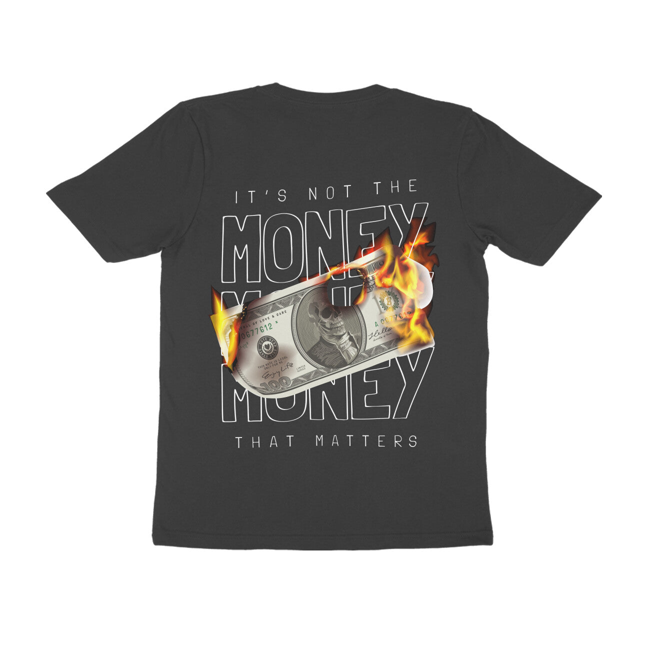 It's Not Money-Back Black Graphic Printed Half Sleeve Street Wear Regular Fit Tshirt for Men