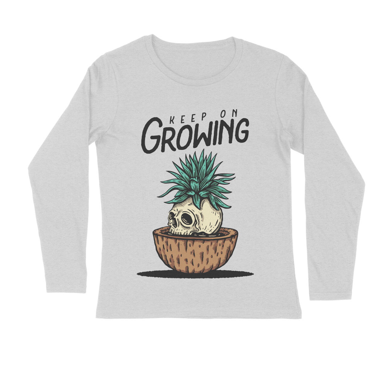 Keep on Growing-Grey Full Sleeve Graphic Printed Round Neck Regular Fit Tshirt for Men