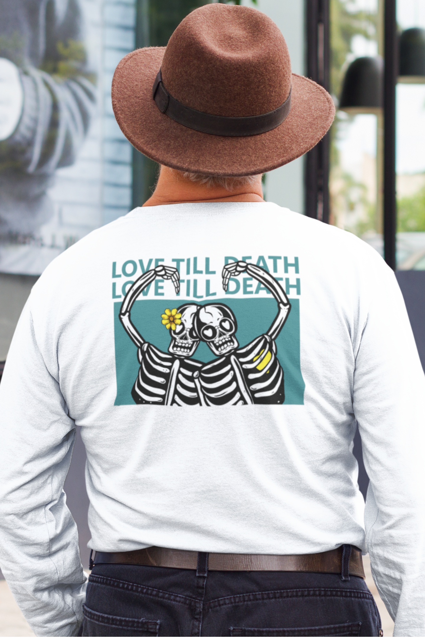 Love till Death-White Back Graphic Printed Full Sleeve Oversized Tshirt for Men
