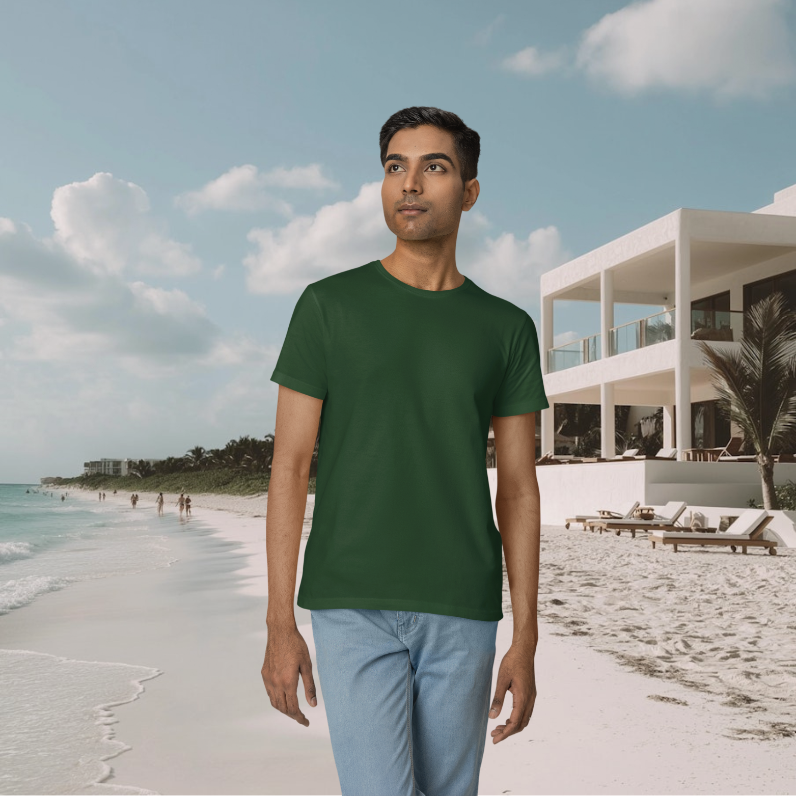 Introduce your wardrobe to this stylish Men back printed round neck half sleeve T-Shirt. This versatile piece features a comfortable round neck and half sleeves, perfect for everyday wear. The unique back print adds a touch of personality to any outfit. Elevate your look while enjoying the soft fabric and modern design.