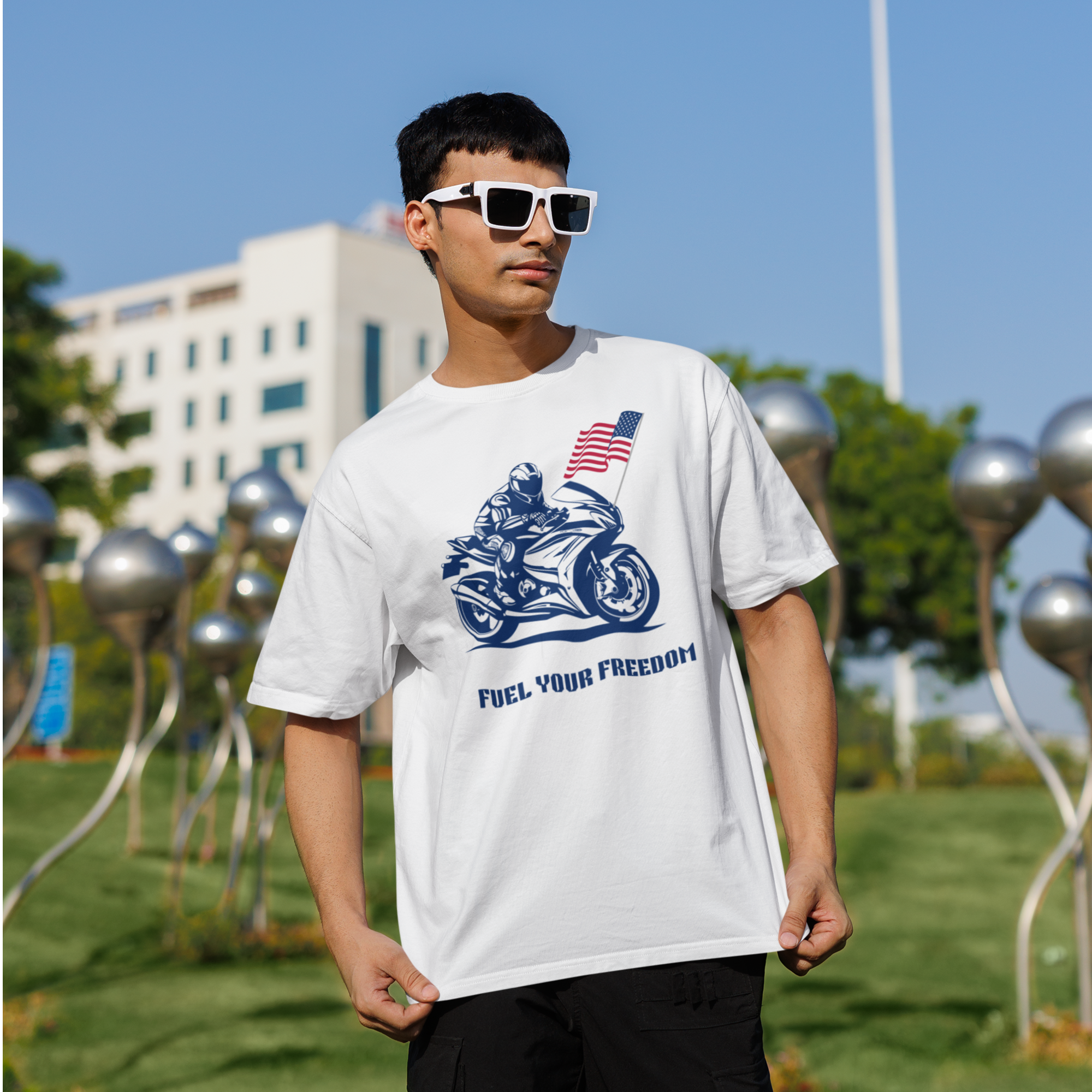 Men bike racing special graphic printed oversized T-shirt