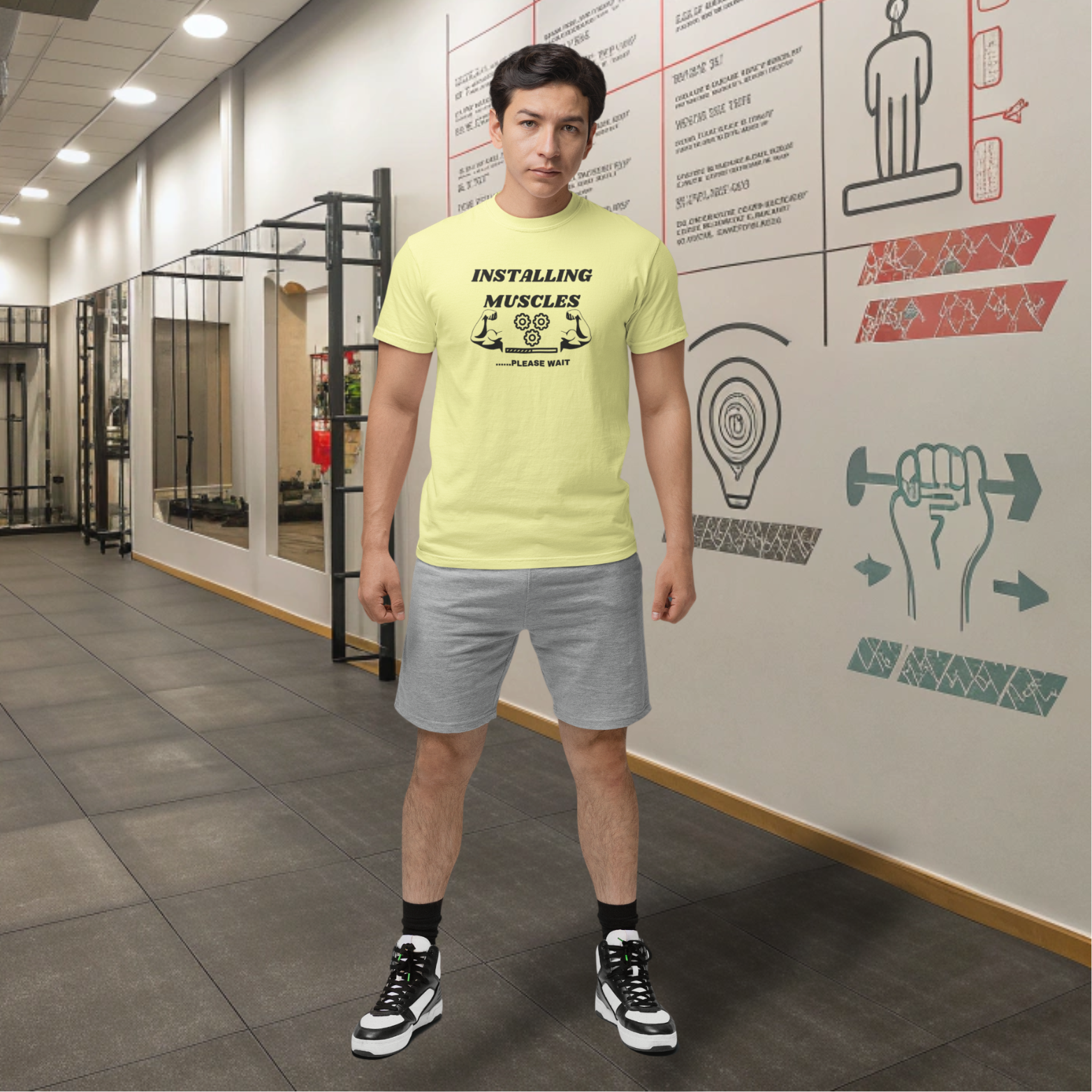 This men's gym t-shirt is designed for a comfortable and stylish workout. The round neck and half sleeves provide a perfect fit, while the printed design adds a trendy touch. Made with premium materials, this t-shirt is perfect for any fitness routine. Get yours today!