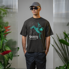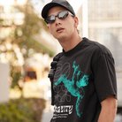 This men's oversized black T-shirt features a bold and eye-catching graphic text print, adding a unique and fashionable touch to your wardrobe. Made with high-quality material, it offers both comfort and style. Elevate your look with this statement piece.