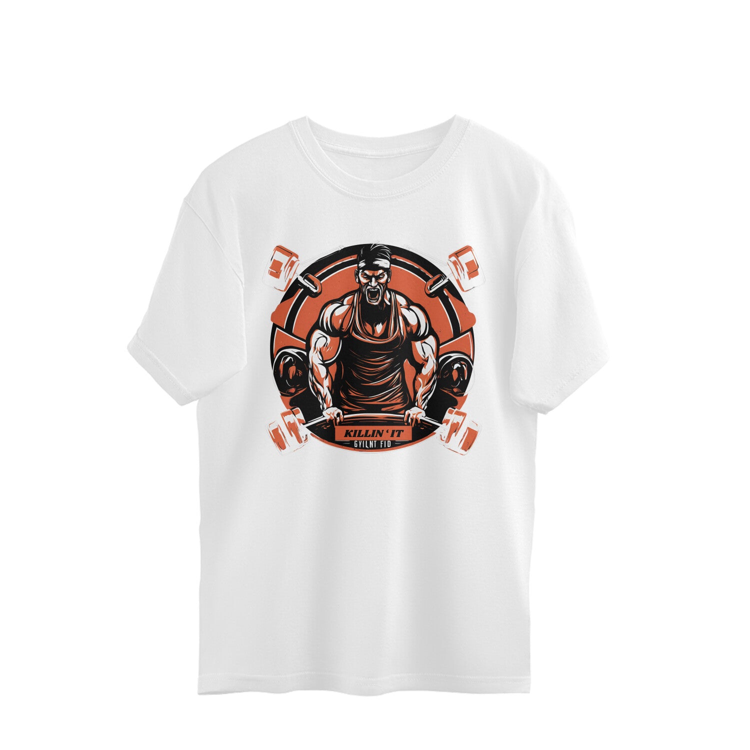 Men gym wear deadlifting graphic printed round neck oversized t-shirt