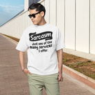 This oversized round neck t-shirt printed with humorous text is sure to bring a smile to any face. Made for men, this t-shirt offers a comfortable fit and a playful design. Crafted from high-quality materials, it is both stylish and durable. Perfect for any casual occasion, it's a must-have addition to any wardrobe.