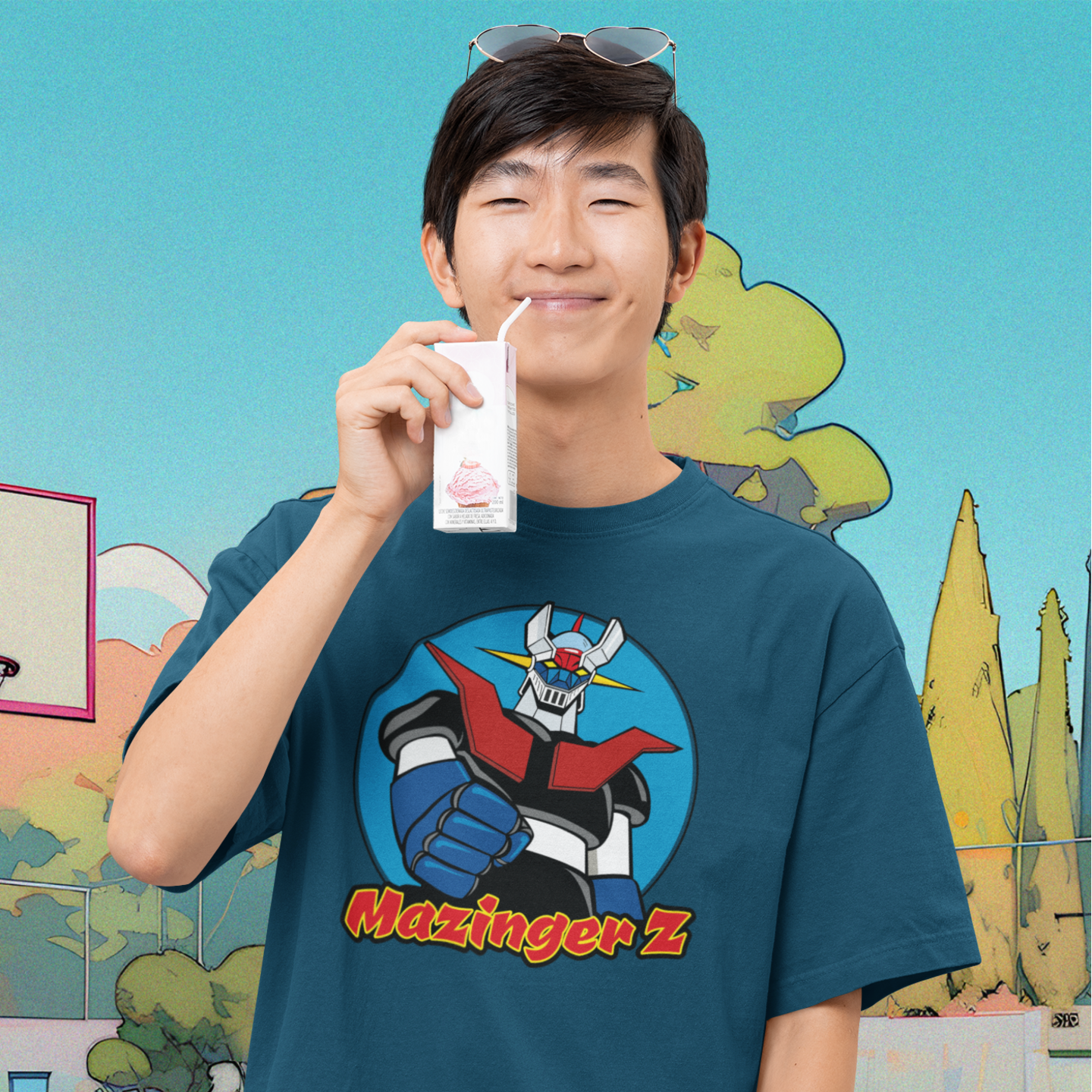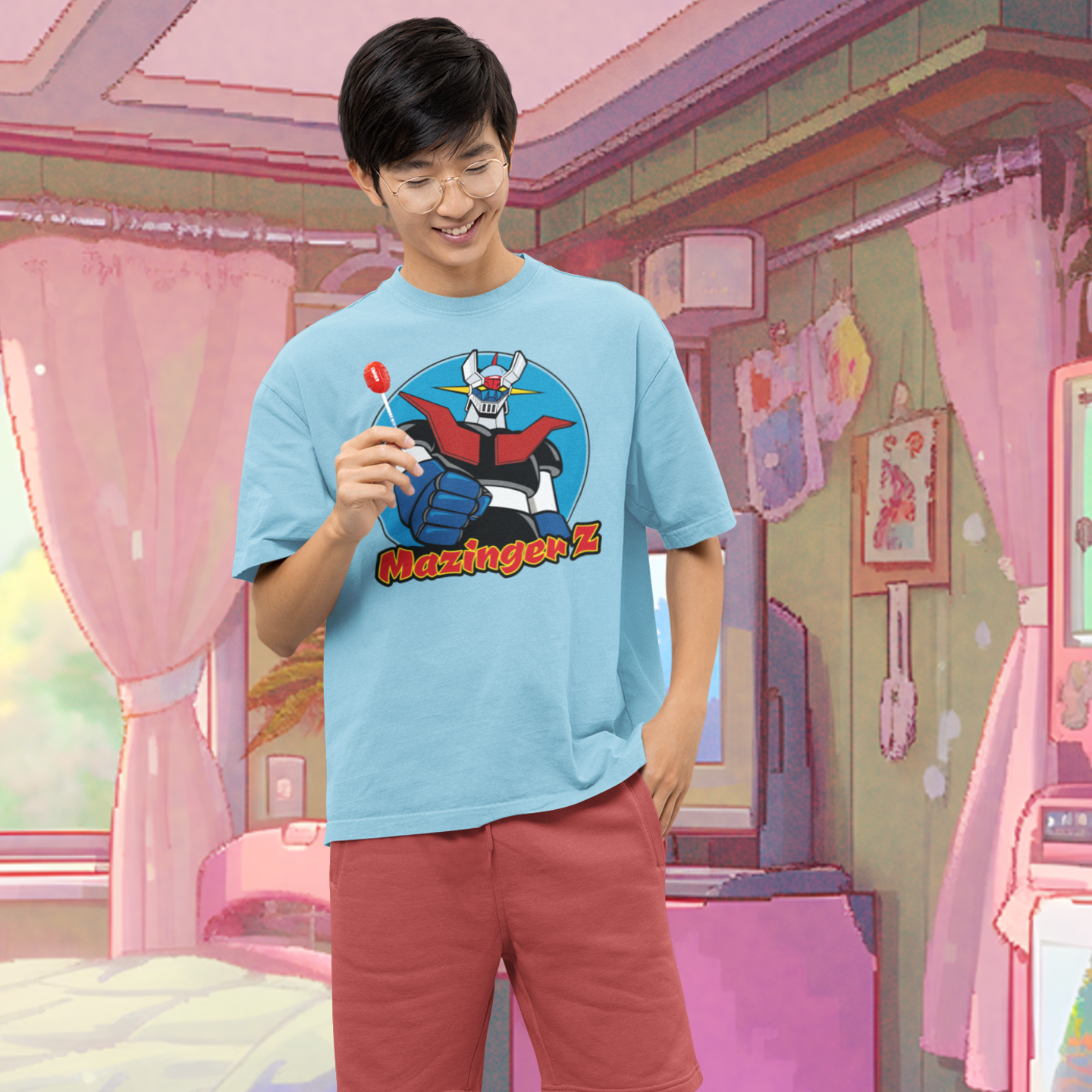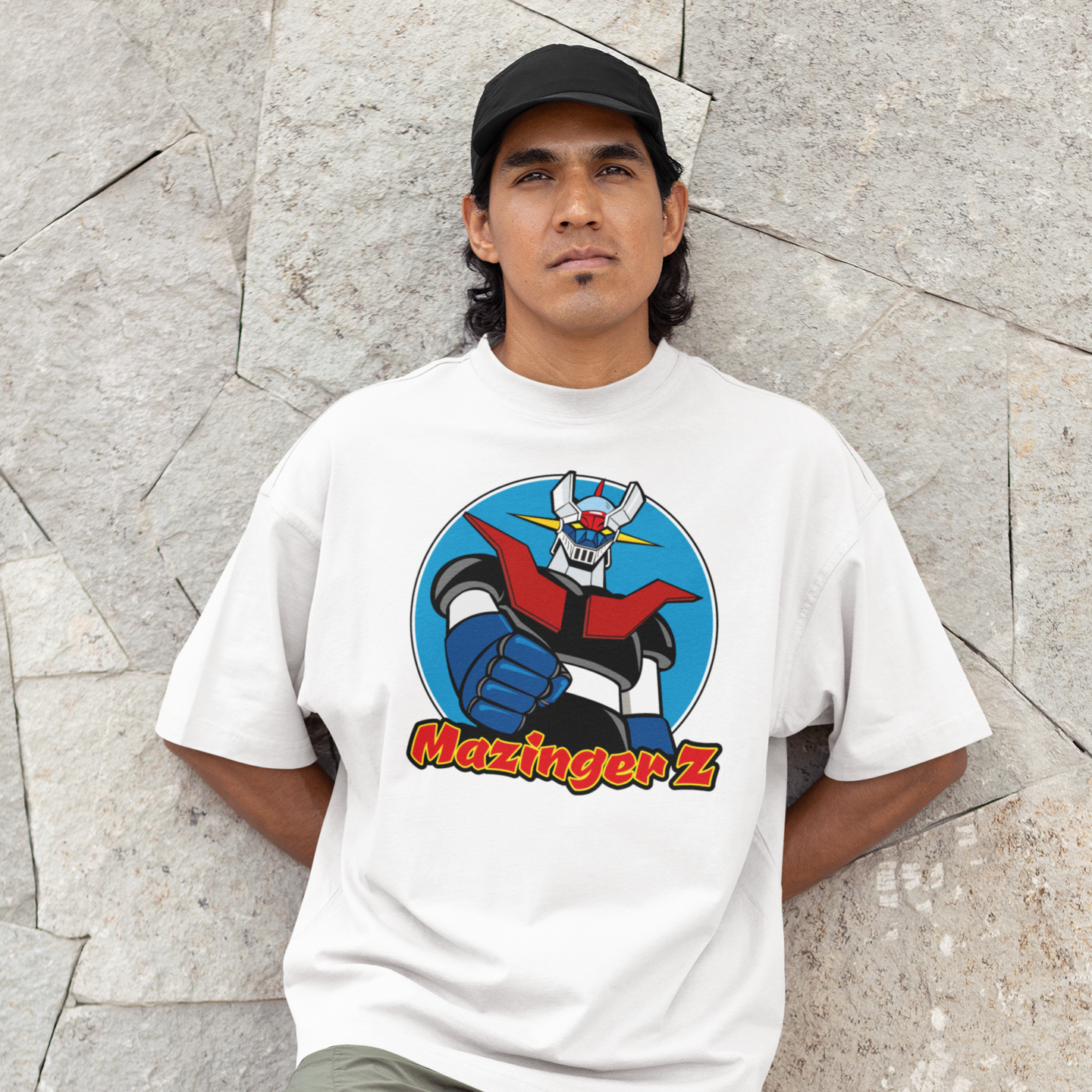 This Men Mazinger''z Retro graphic printed oversized Tee is a stylish statement piece for any fashion-forward man. Crafted with high-quality fabric and a striking graphic print, this tee offers a comfortable fit and a unique retro-inspired design. Upgrade your wardrobe with this must-have piece and make a bold fashion statement.