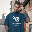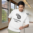 Introducing our Men's oversized T-shirt with a unique text print design on a classic round neck. Made with high-quality materials, this shirt offers comfort and style. Perfect for any casual or trendy outfit, this T-shirt is a must-have for any fashion-forward man.