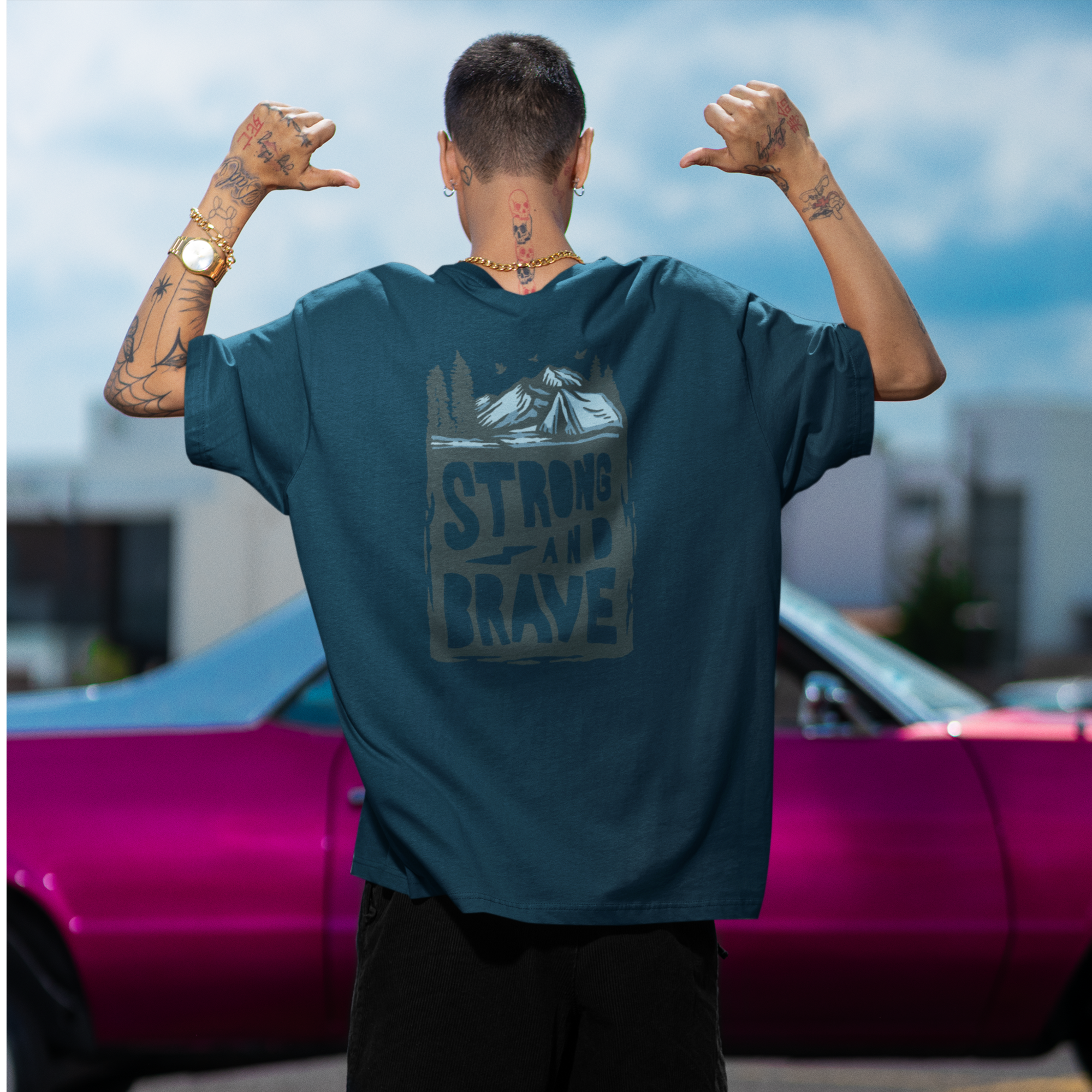 Overview; Designed with a street-style fit, these oversized t-shirts are the trend! They are made of thick, durable, and comfortable cotton. Side-seamed. Sustainable Inks used for Printing – water-based, toxin-free, and non-hazardous with a lower carbon footprint