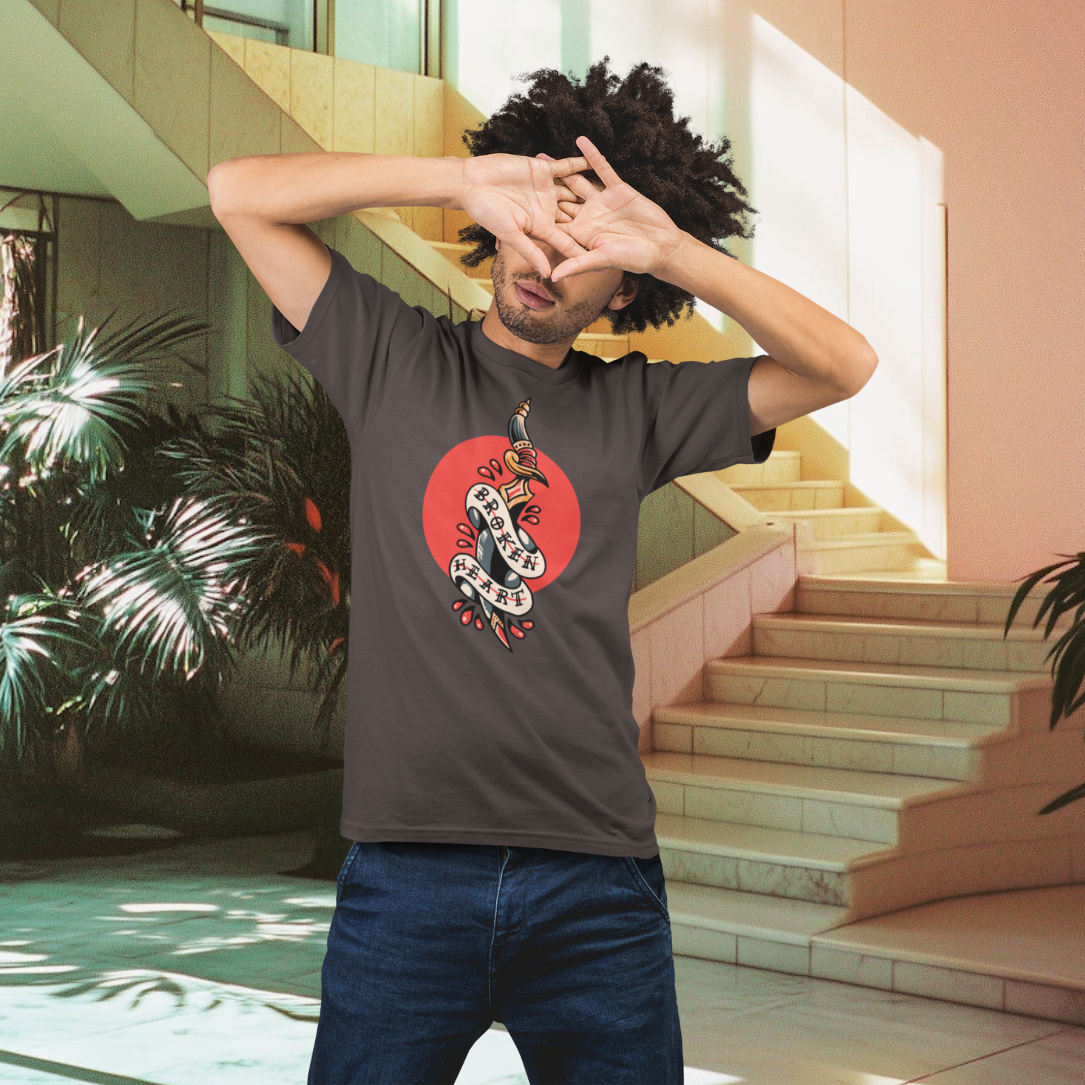 This Men's printed streetwear T-Shirt features a round neck design and half sleeves. Made from high quality materials, it offers both comfort and style. Perfect for casual wear or dressing up, it adds a touch of uniqueness to any outfit. Upgrade your wardrobe with this versatile and fashionable T-Shirt.