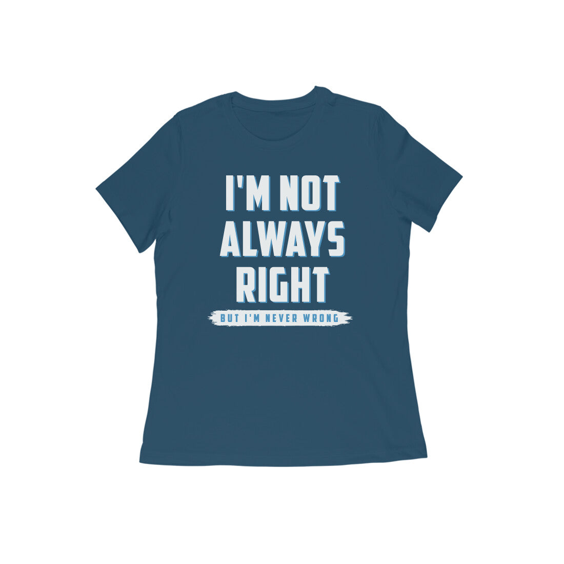 Navy Blue Humorous Text Printed Round Neck T-Shirt for Women