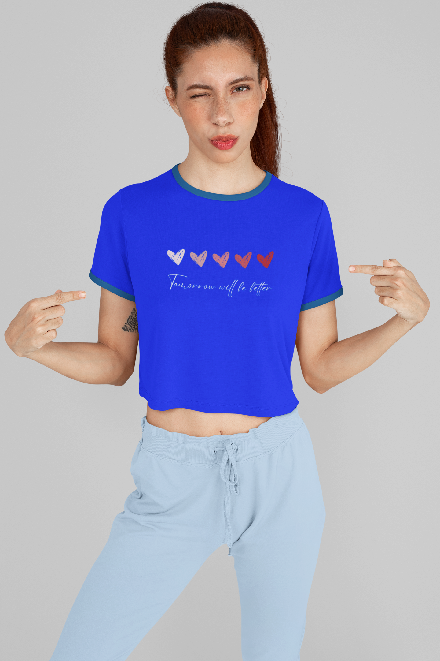 The Tomorrow Will be Better Half Sleeve Crop Top features a classic round neck design and comfortable half sleeves, tailored for a flattering fit. Crafted to complement modern wardrobes, this crop top pairs effortlessly with high-waisted jeans or skirts, making it ideal for casual outings or layered looks. Its breathable fabric ensures all-day comfort, while the stylish cut adds a contemporary edge to your everyday attire. Perfect for women seeking a versatile and chic addition to their collection, this top balances trend and comfort with expert precision.