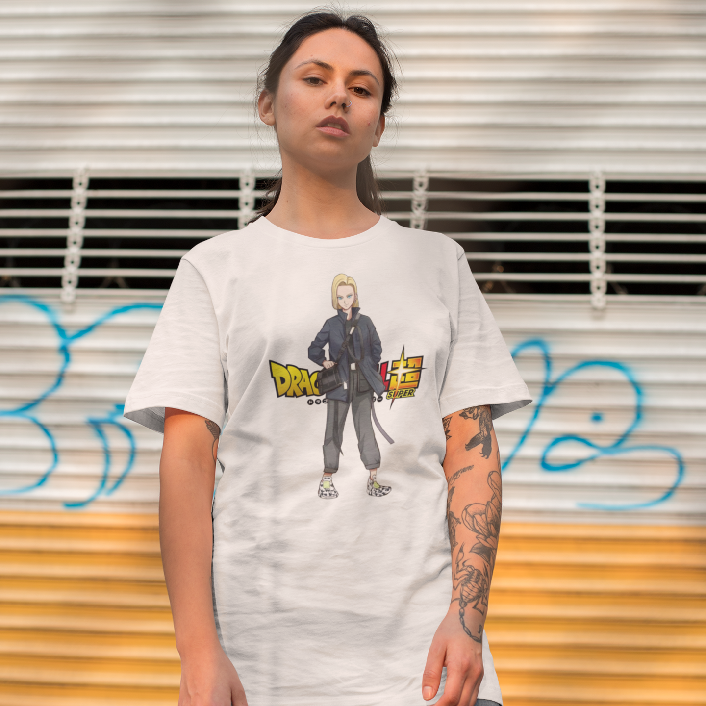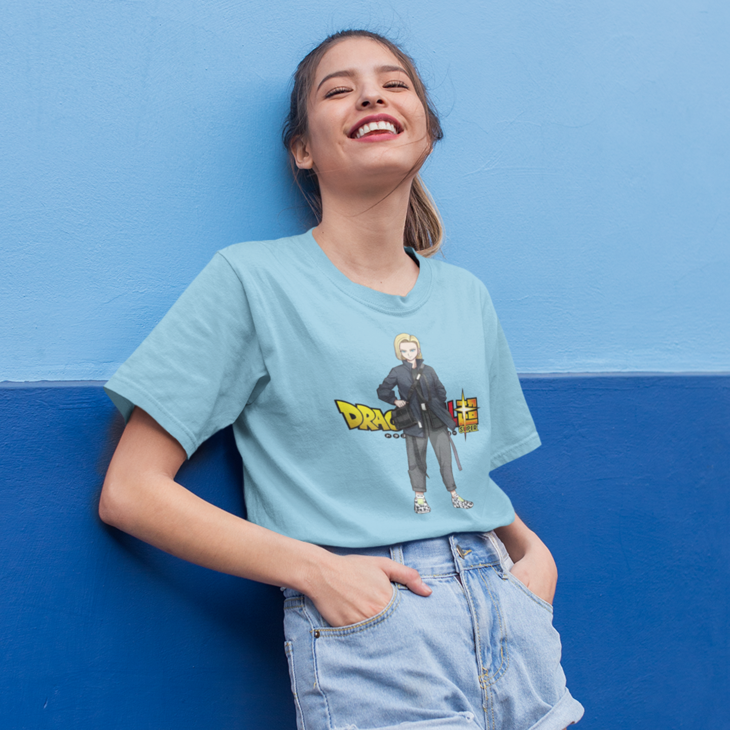Indulge in comfort and style with our Women's Android 18 Crew Neck Oversized t-shirt. Featuring a bold and vibrant graphic print, this shirt is made of high-quality material for ultimate durability. With its relaxed and oversized fit, you'll feel confident and comfortable all day long.