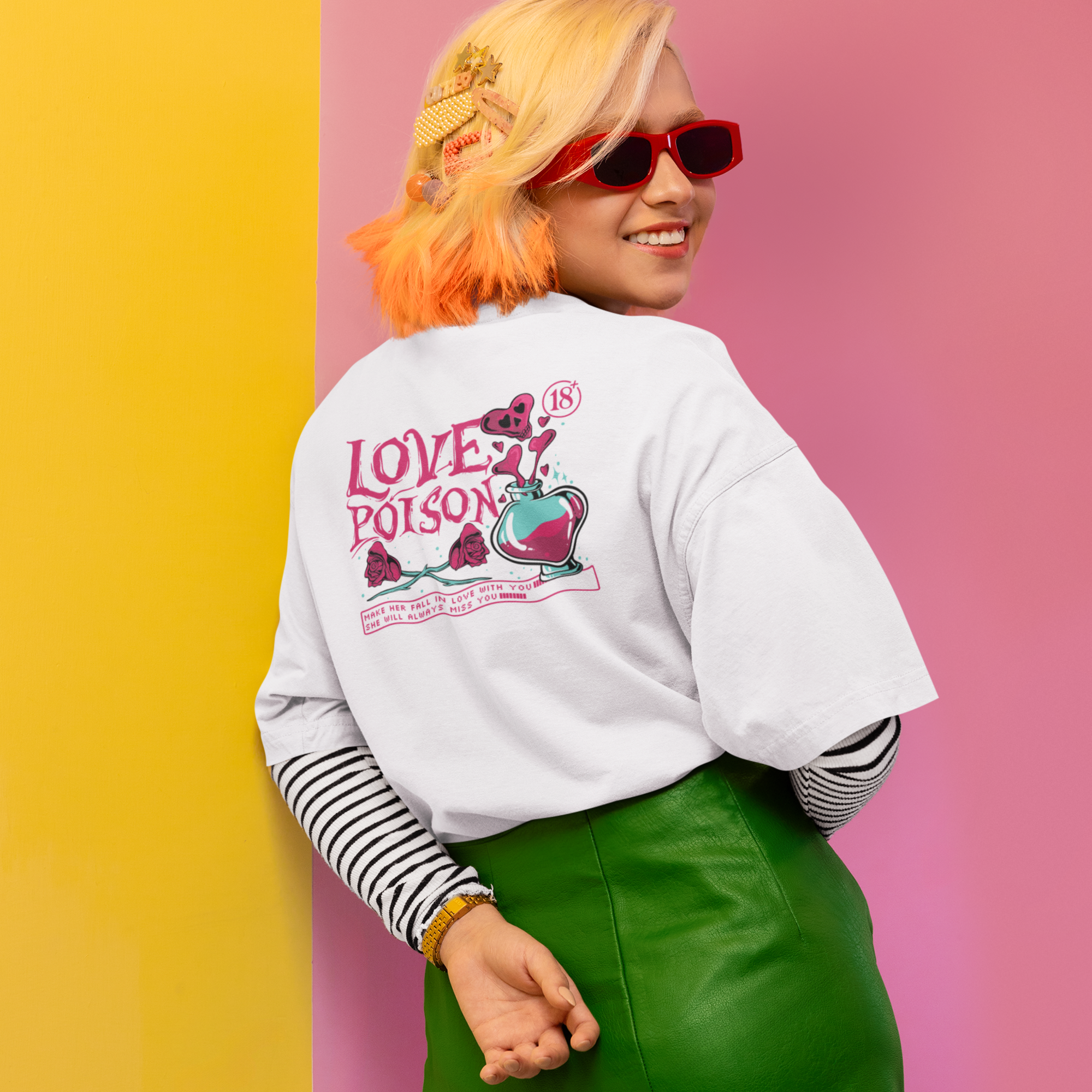 This streetwear T-shirt features an oversized fit and round neck design. Made for women, it boasts a unique back print for an eye-catching look. Crafted with comfort in mind, it's perfect for casual wear or a stylish statement piece. Elevate your wardrobe with this streetwear essential.