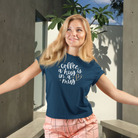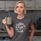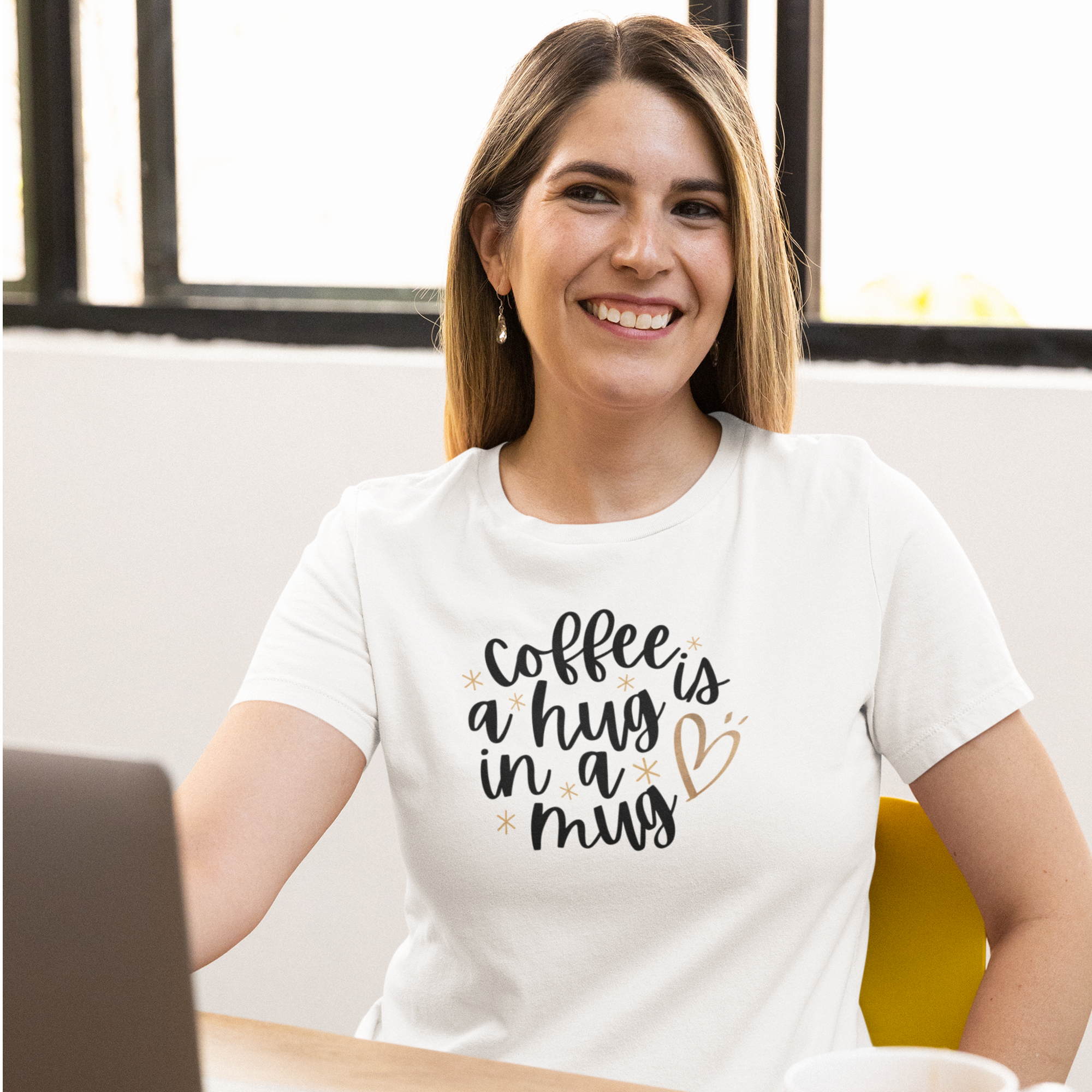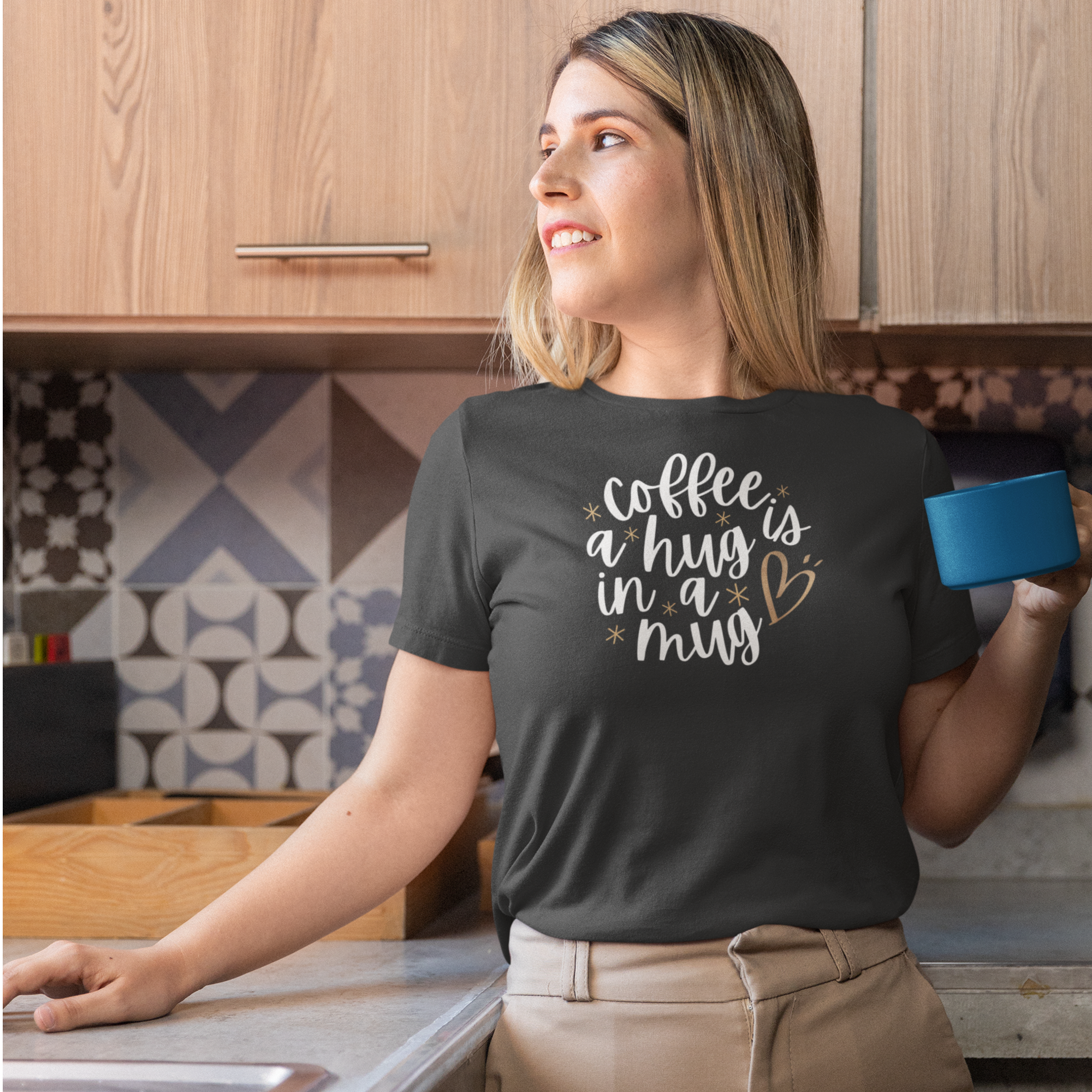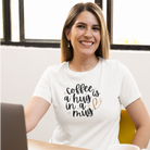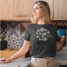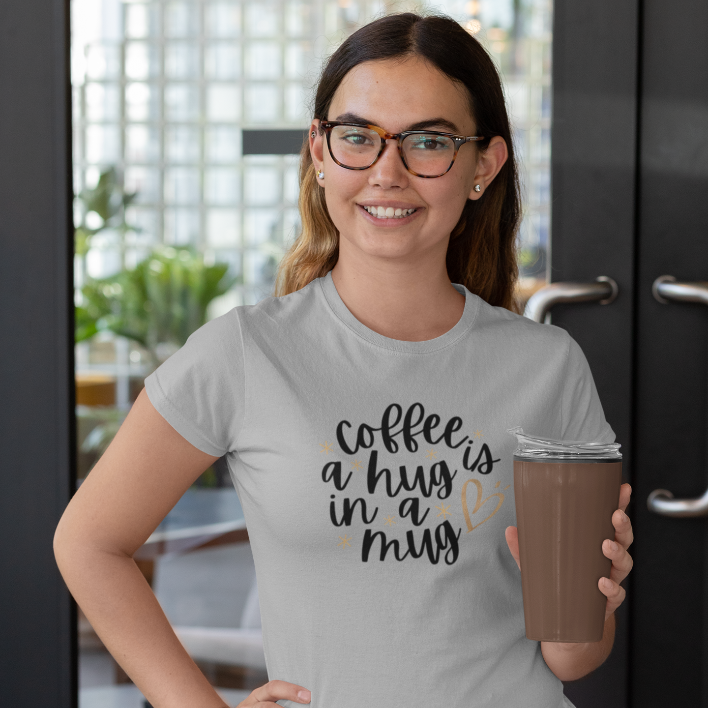 This women's graphic printed T-shirt is perfect for coffee lovers! Made with a soft round neck, it is comfortable for everyday wear. The eye-catching graphic adds a fun touch to any outfit. Show off your love for coffee with this stylish shirt.