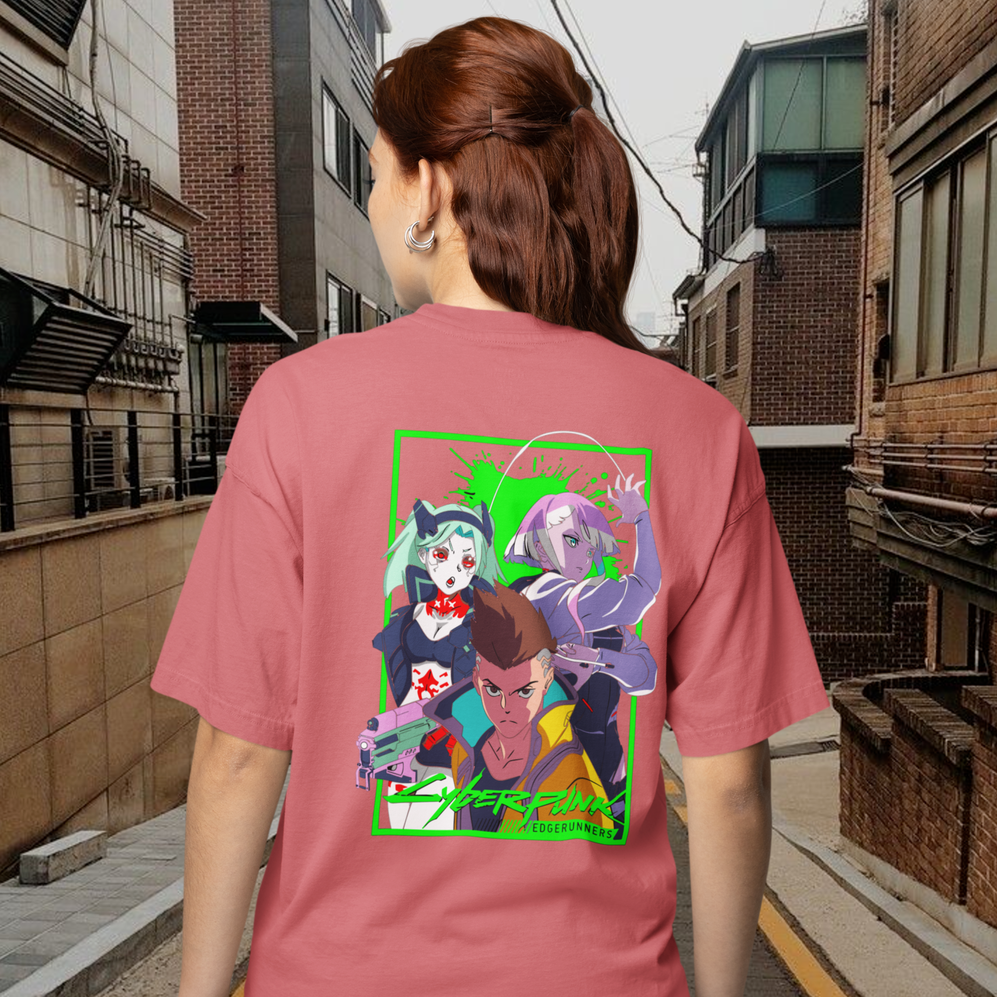 Introducing the Women Cyberpunks oversized Tee, featuring edgerunners graphic back print. Made for both style and comfort, this tee showcases your love for the cyberpunk aesthetic in a modern and trendy way. Don't miss out on this must-have for all edgerunners and cyberpunk enthusiasts.