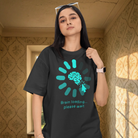 This Women's graphic text printed oversized T-shirt offers a versatile and stylish addition to your wardrobe. Made from high-quality materials, it boasts a comfortable and oversized fit. Perfect for any occasion, the unique graphic print adds a touch of personality to any outfit.