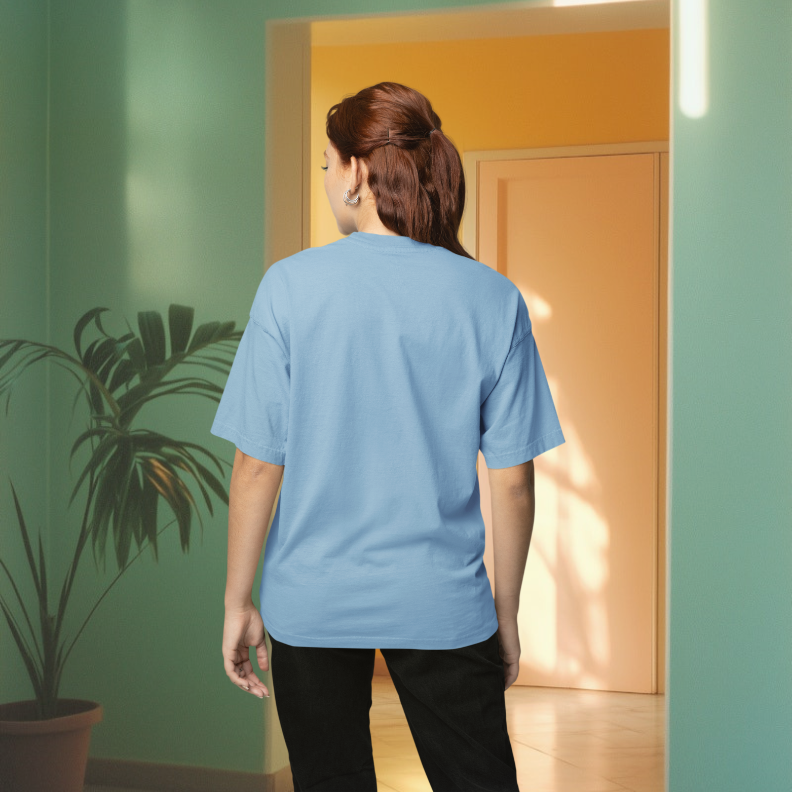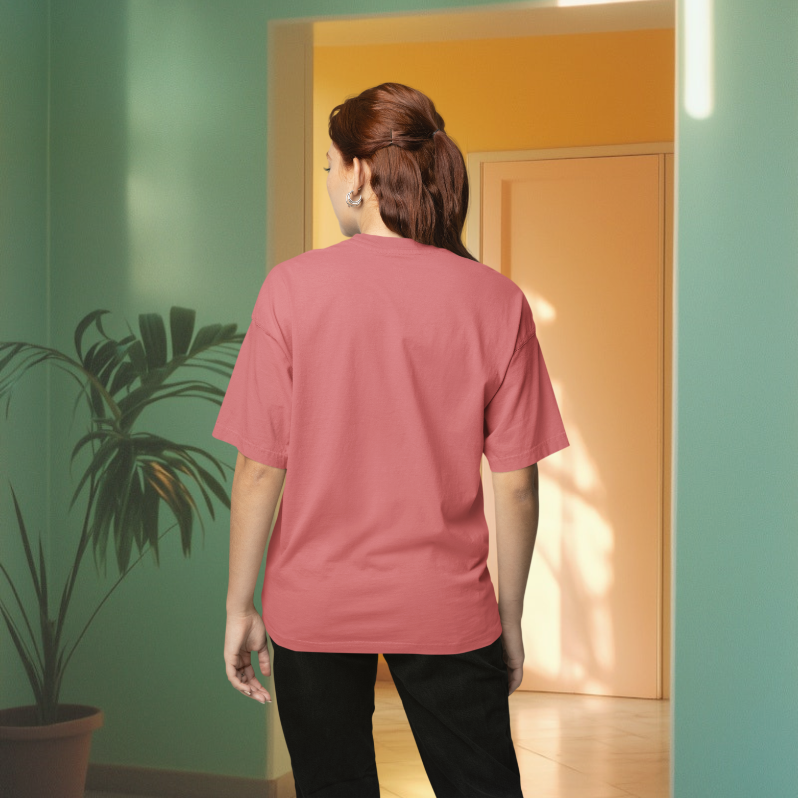 Overview; Designed with a street-style fit, these oversized t-shirts are the trend! They are made of thick, durable, and comfortable cotton. Side-seamed. Sustainable Inks used for Printing – water-based, toxin-free, and non-hazardous with a lower carbon footprint
