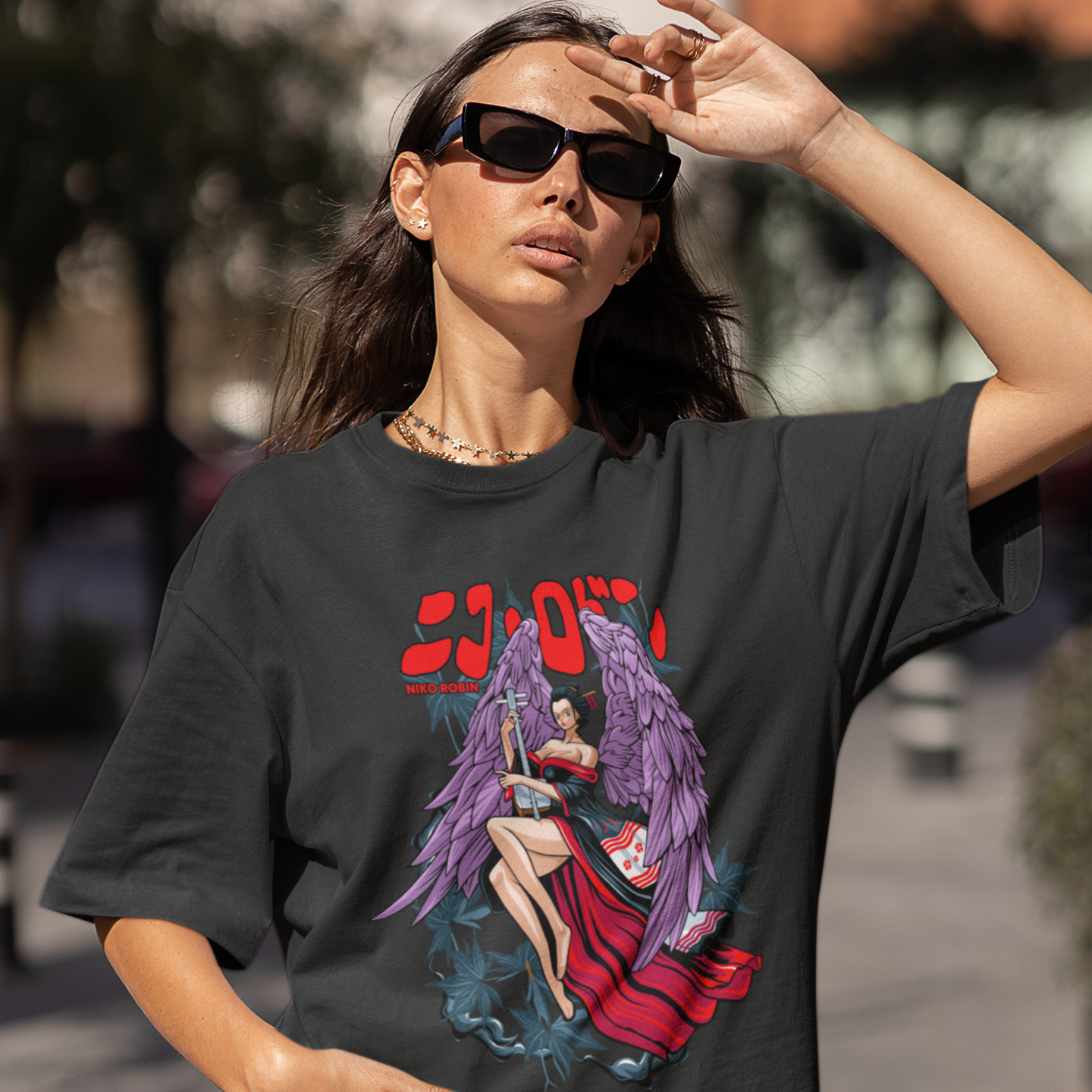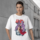 This Women's Nico Robin Tee features a bold graphic print and an oversized fit for a stylish and comfortable look. Made with a crew neck design, this shirt is perfect for any casual occasion. Showcase your love for the iconic character in this fashion-forward piece.