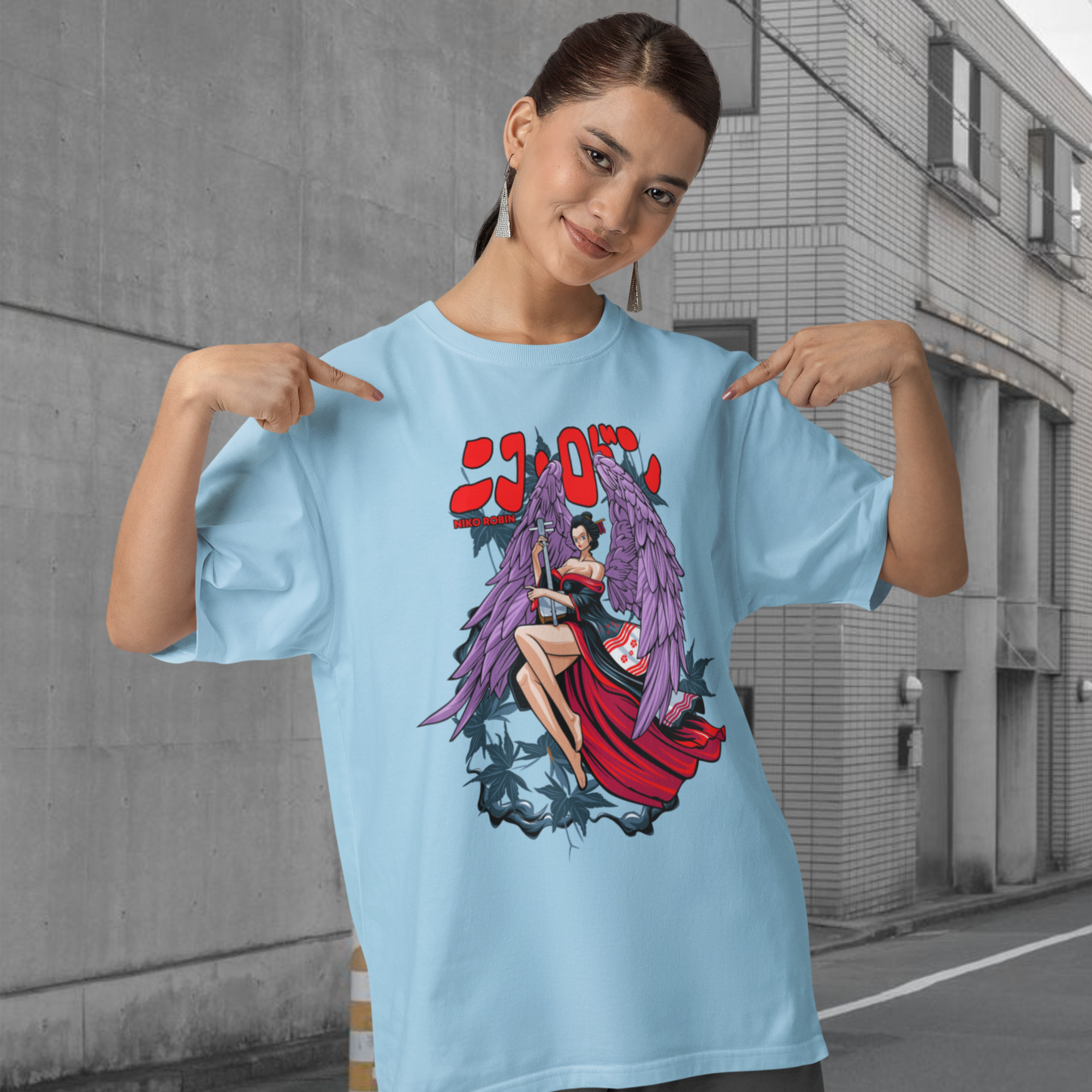 Women nico robin graphic printed crew neck oversized Tee