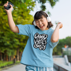 This women's printed oversized T-shirt features a round neck design and streetwear-inspired graphics. Crafted from high-quality materials, it offers comfortable and stylish wear. Perfect for any casual or street style look, this T-shirt makes a bold statement while providing an effortlessly cool and trendy aesthetic.