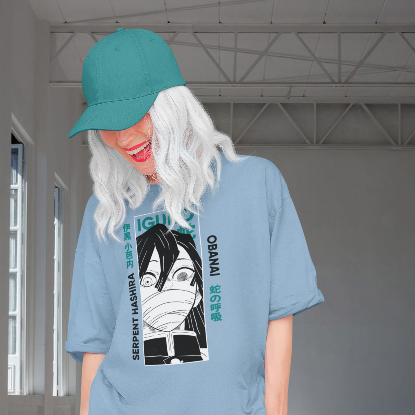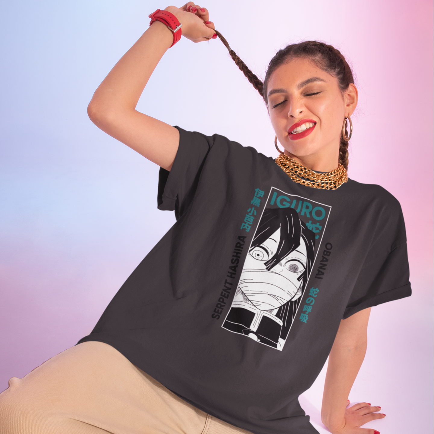 Expertly crafted with a bold graphic print, our Women Serpent Hashira Tee is a must-have for any stylish wardrobe. Made with a comfortable oversize fit and crew neck design, this tee offers both fashion and comfort in one. Elevate your style with this statement piece.
