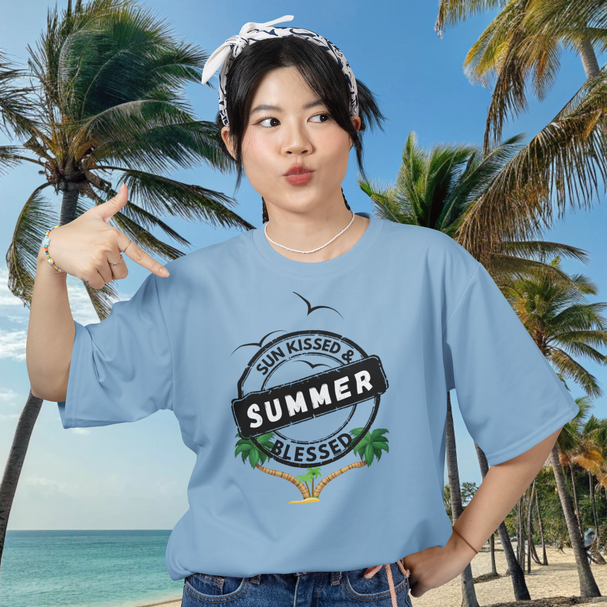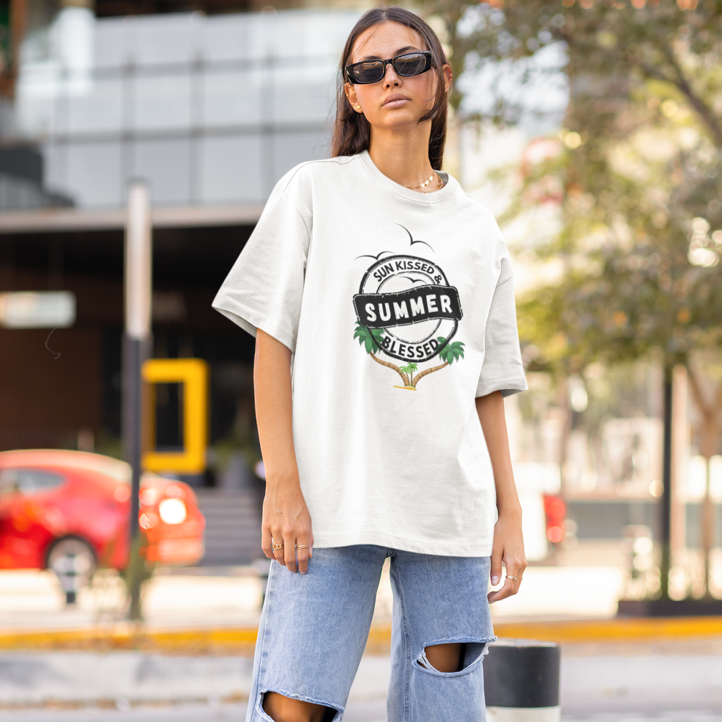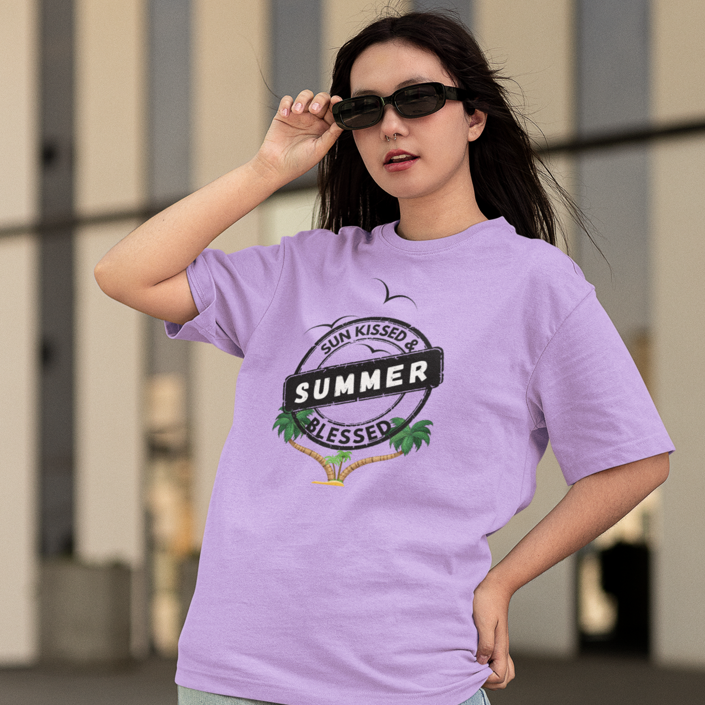 This Women's Summer Special T-Shirt features an oversized fit and a trendy printed round neck design. Made from lightweight and breathable materials, it is perfect for staying cool and stylish during the warmer months. Upgrade your summer wardrobe with this must-have piece.
