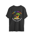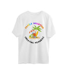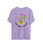 Elevate your vacation mood with our special printed round neck oversized T-Shirt for women. Made with comfortable fabric and stylish design, it's perfect for all your holiday adventures. Say goodbye to boring outfits and hello to effortless style. Available now!