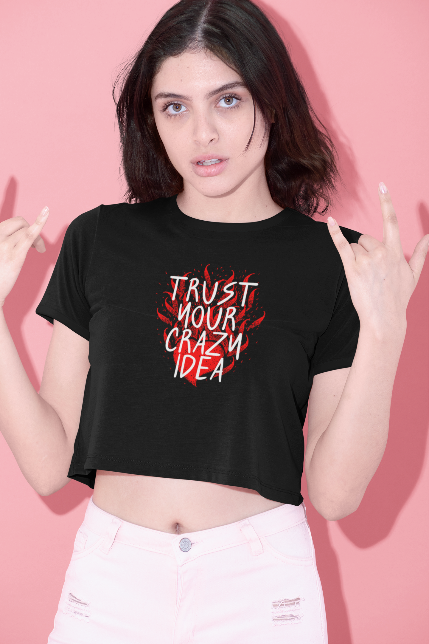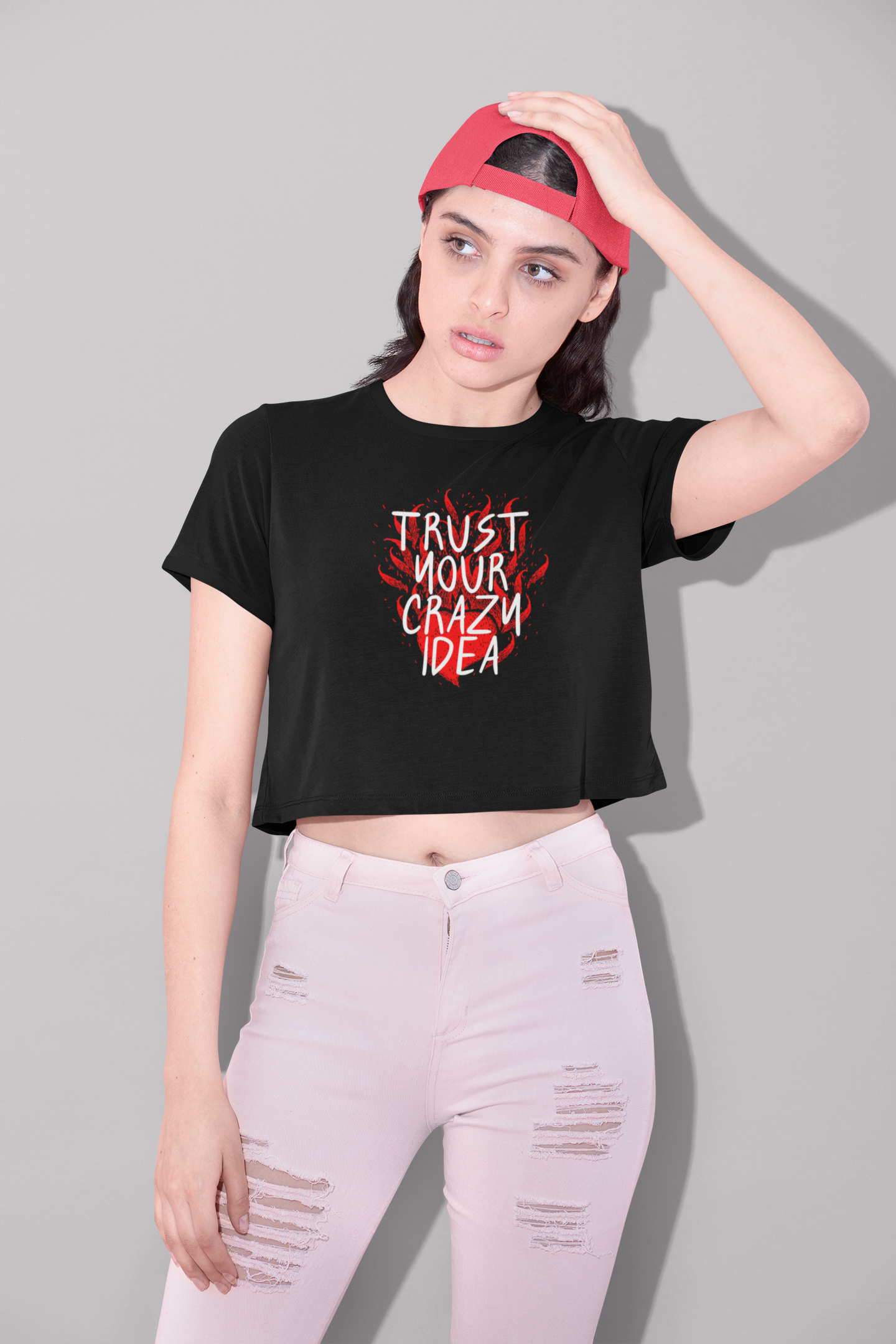 Trust Your Crazy Idea graphic print Half Sleeve Round Neck Crop Top for women
